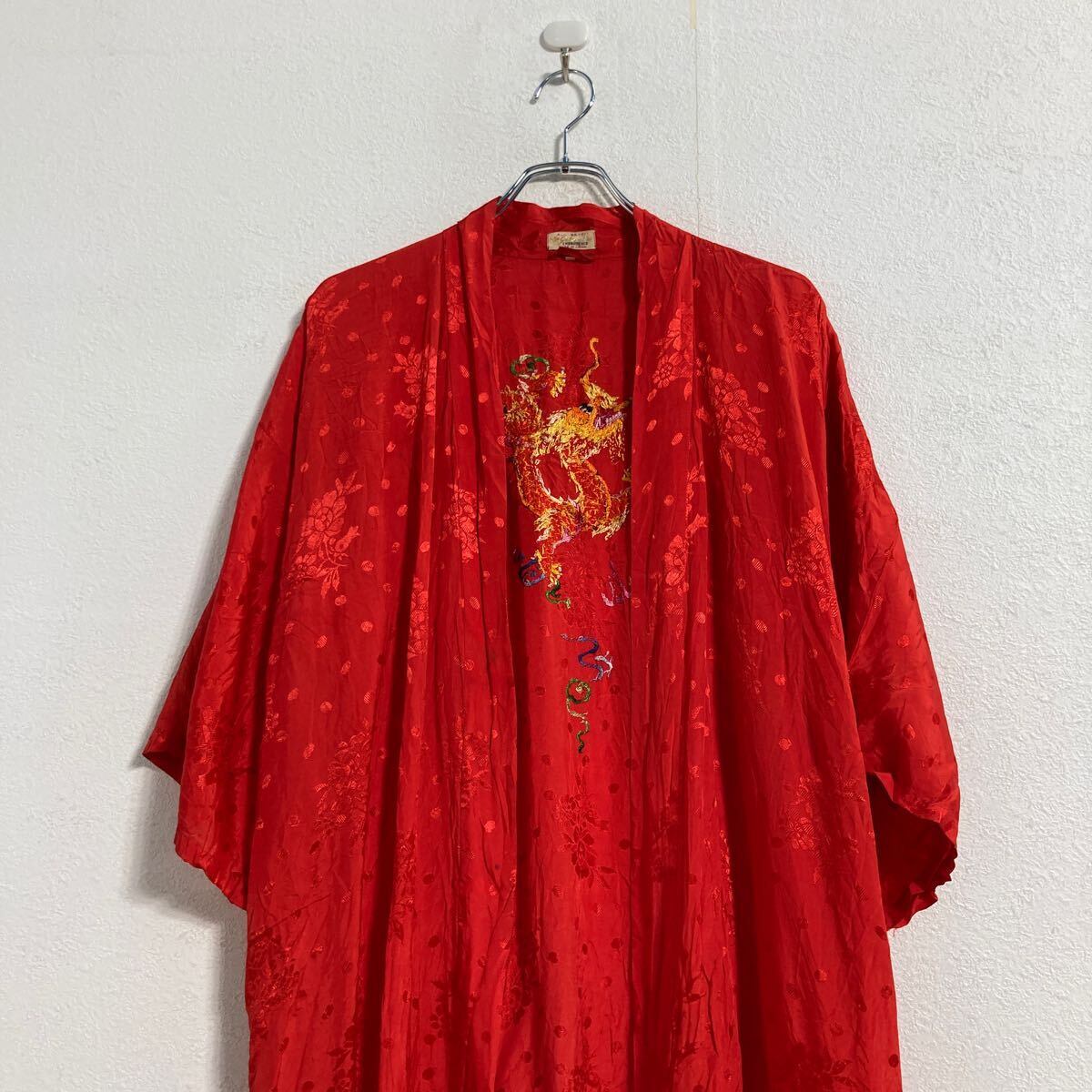 チャイナガウン S レッド ドラゴン 刺繍 ガウン 羽織り オリエンタル レーヨン 中国製 古着卸 アメリカ仕入 a607-5624