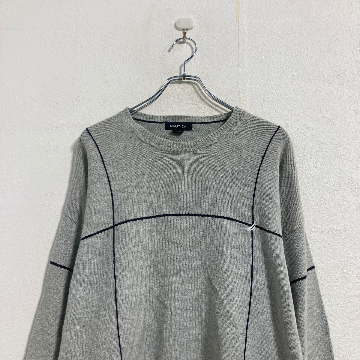 NAUTICA コットン ニット セーター XL グレー ネイビー ノーティカ クルーネック ビッグサイズ 古着卸 アメリカ仕入 a607-5951