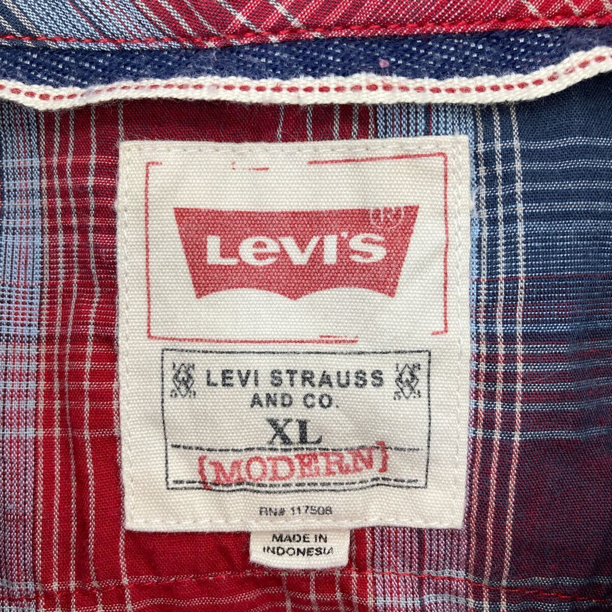Levi's 長袖 シャツ XLサイズ リーバイス 胸ポケット ウエスタンシャツ チェック柄 レッド 古着卸 アメリカ仕入 t2407-3872