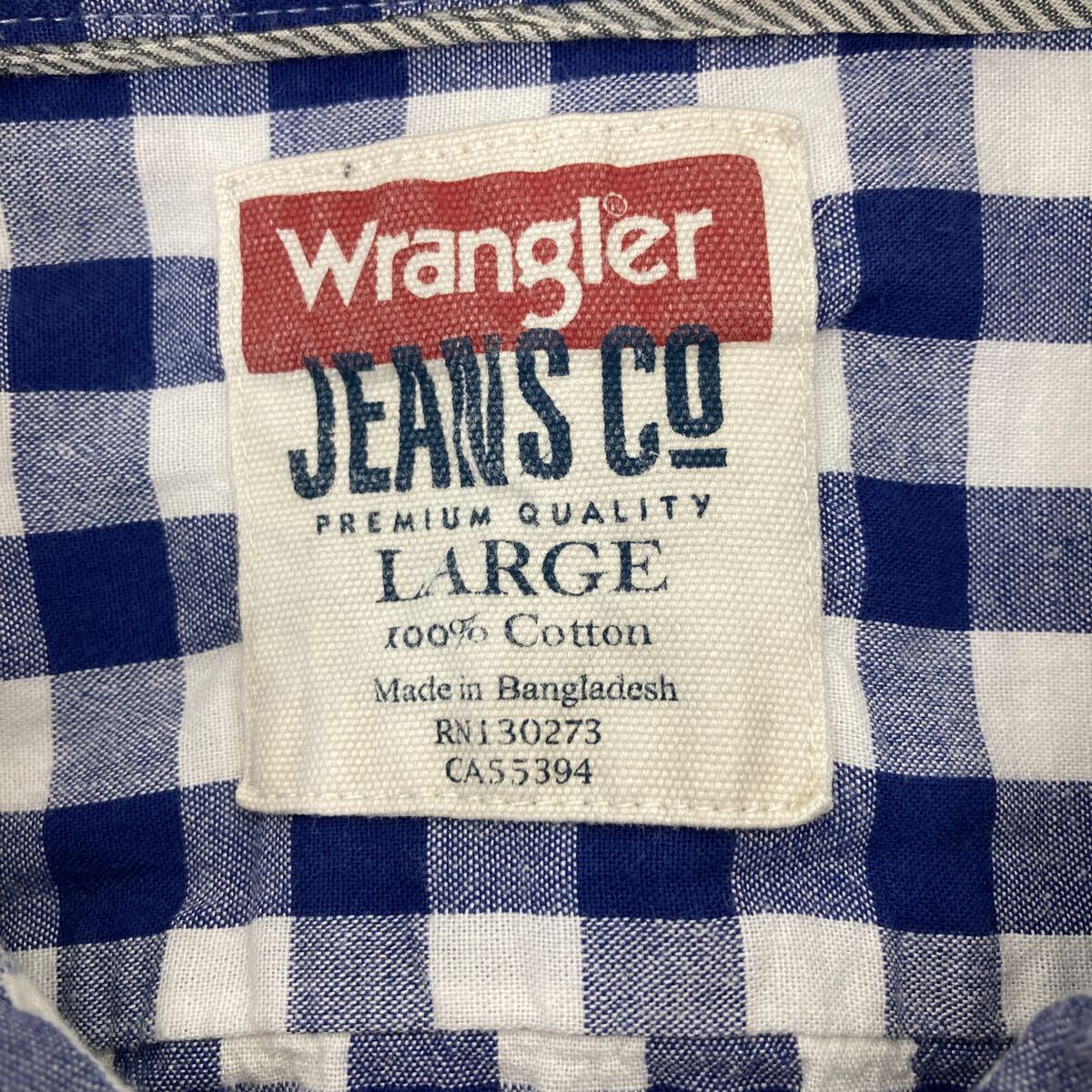 Wrangler 長袖 シャツ Lサイズ ラングラー 胸ポケット チェック柄 ブルー コットン 古着卸 アメリカ仕入 t2407-3894