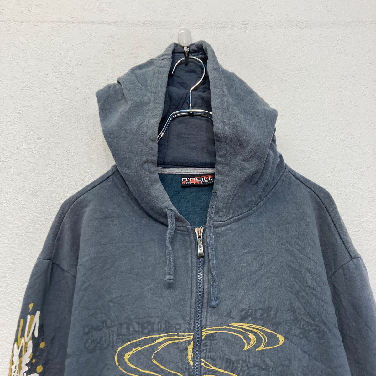 O’NEILL プリント スウェット パーカー L グレー フルジップ 裏起毛 古着卸 アメリカ仕入 a607-6776