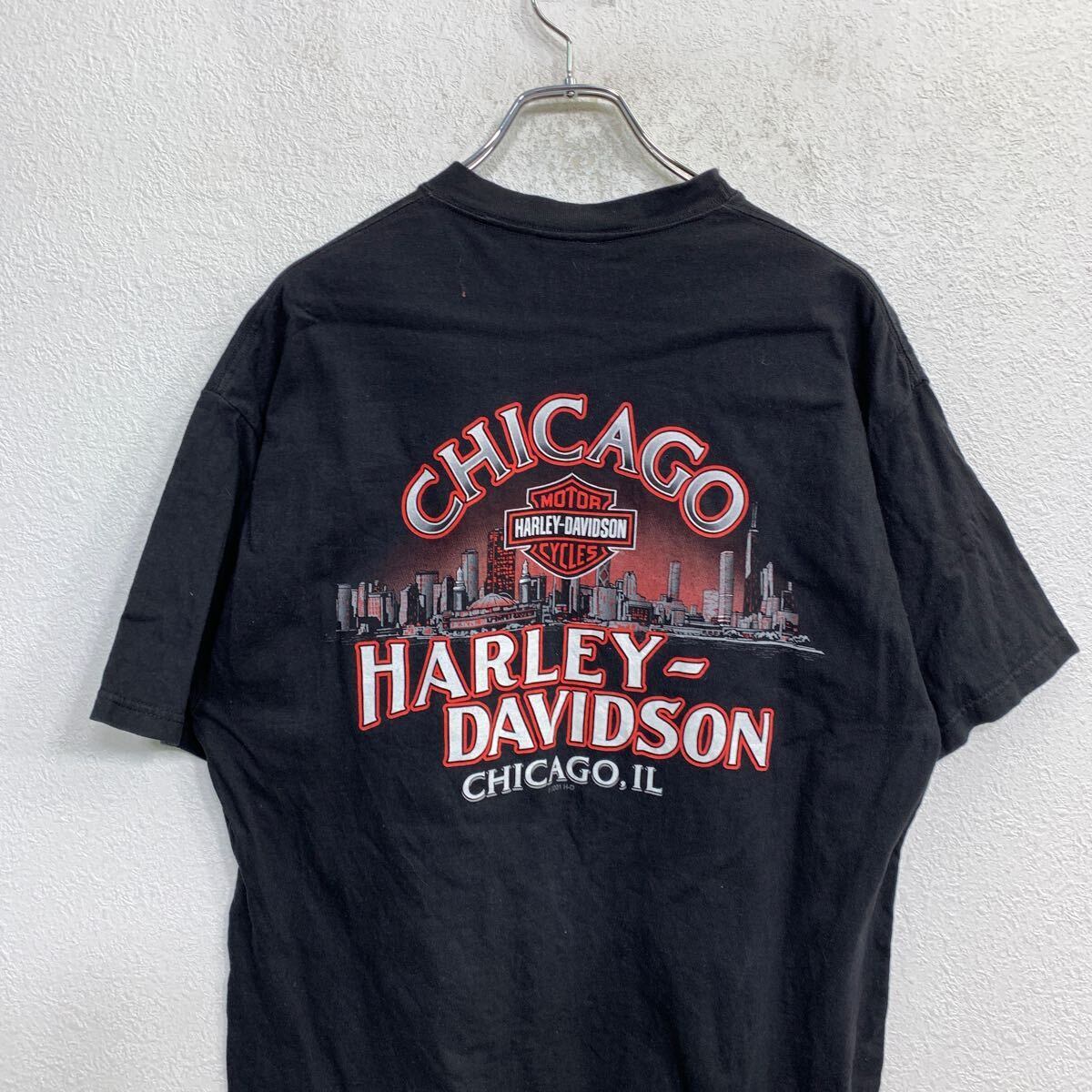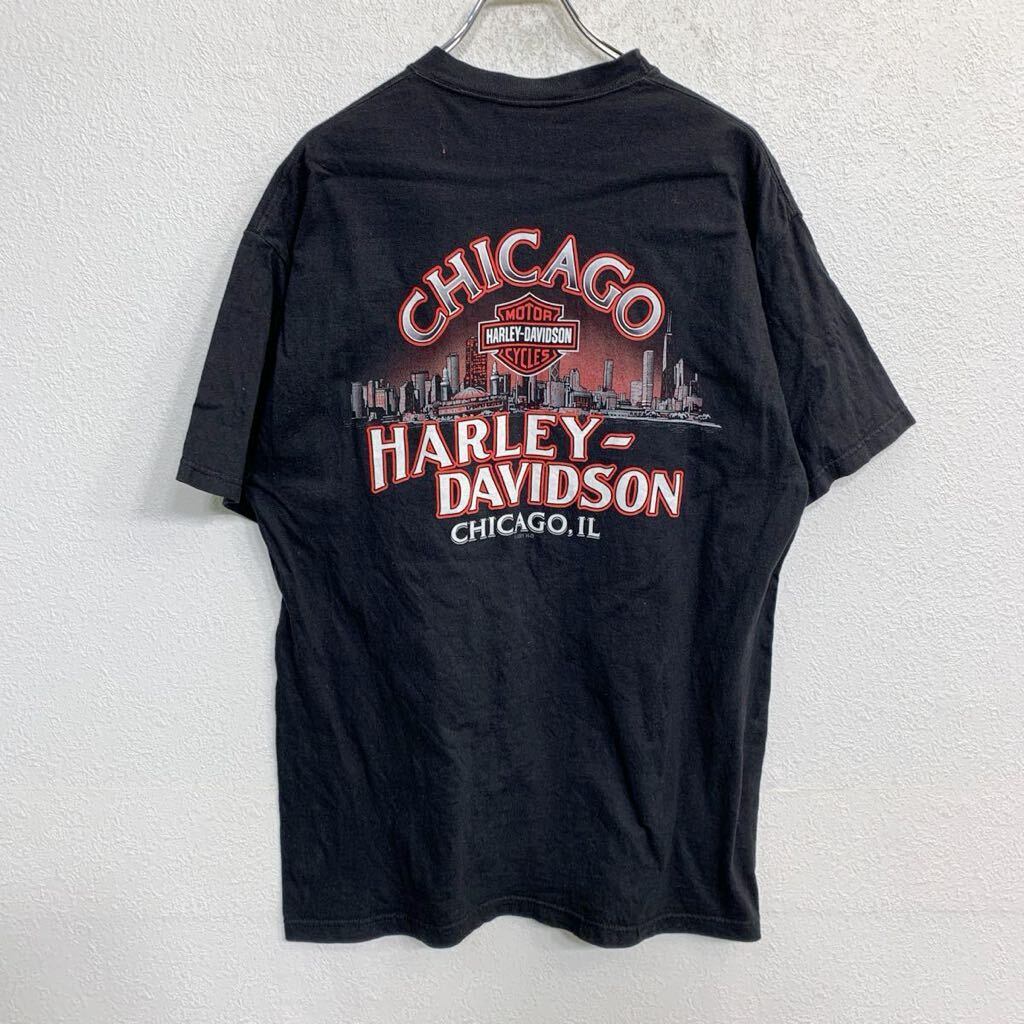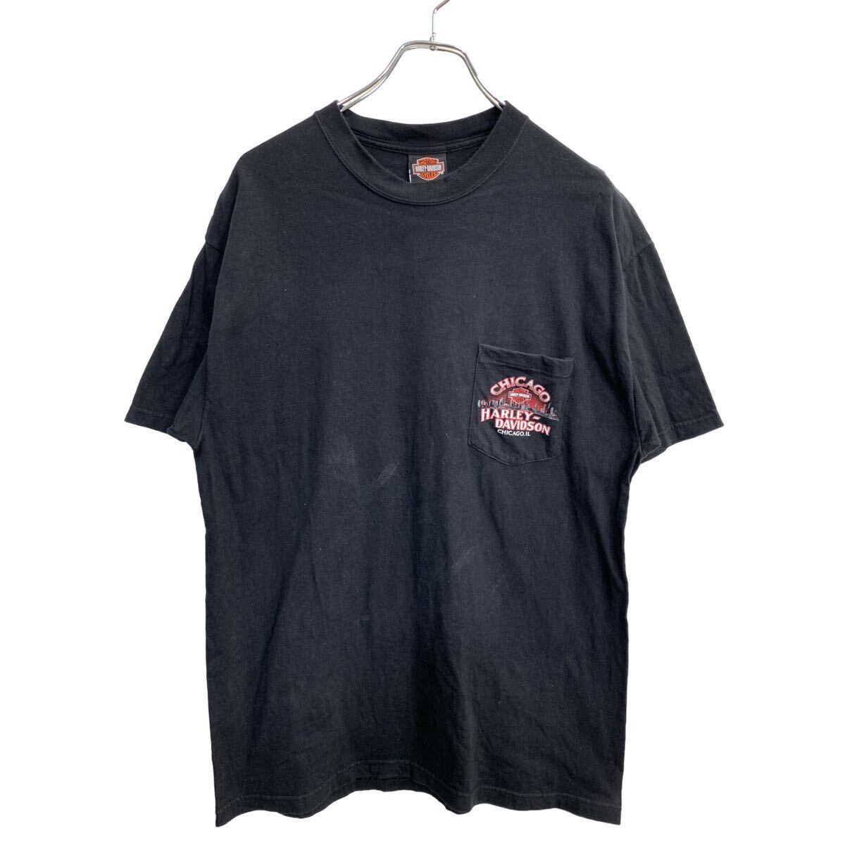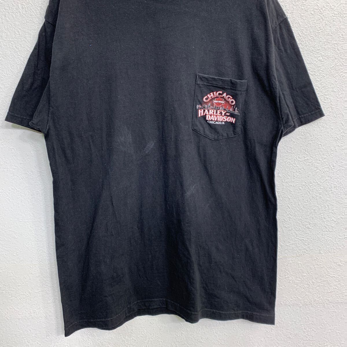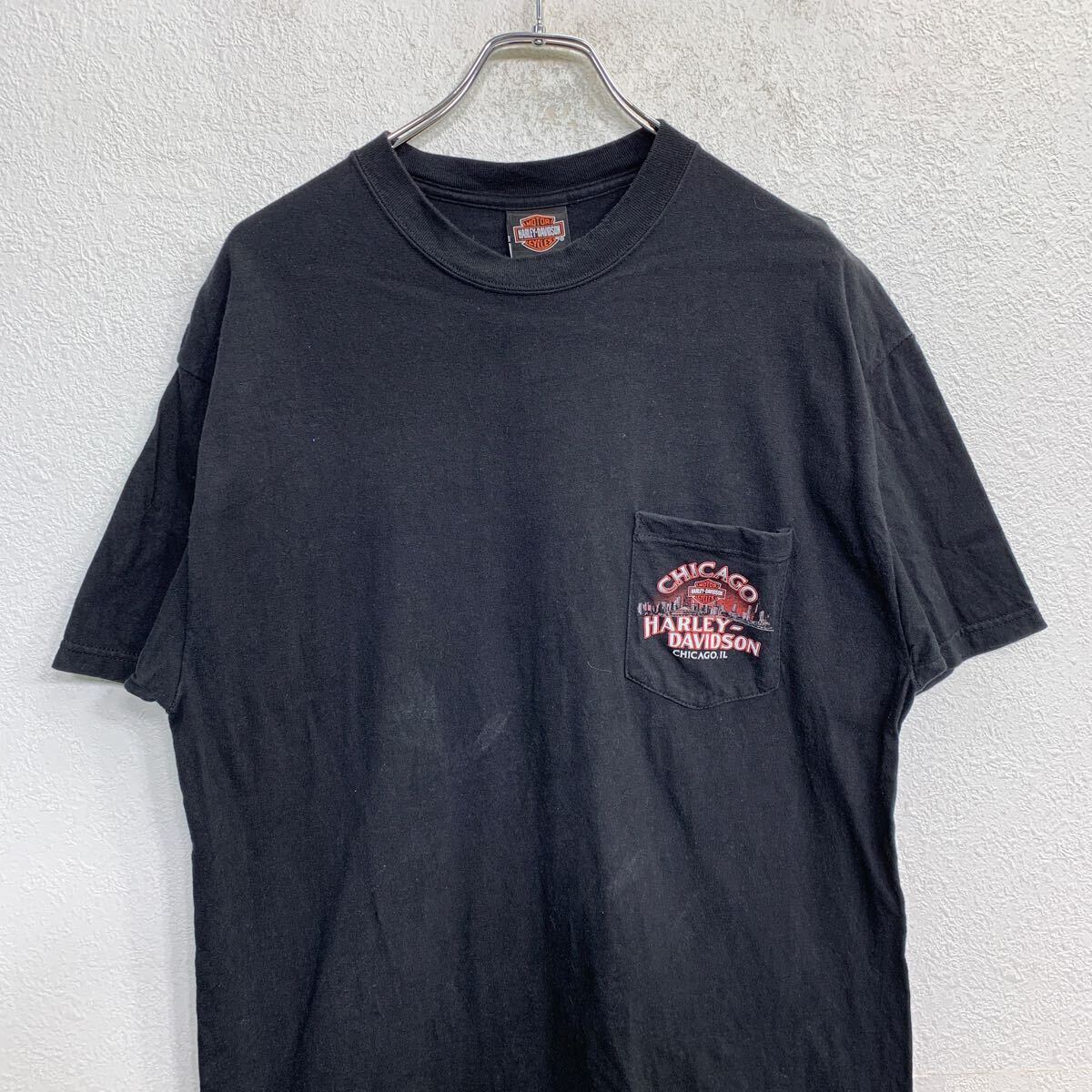 Harley-Davidson 半袖 プリント Tシャツ Lサイズ ハーレーダビッドソン ポケット ブラック コットン USA製 古着卸 アメリカ仕入 t2407-4475