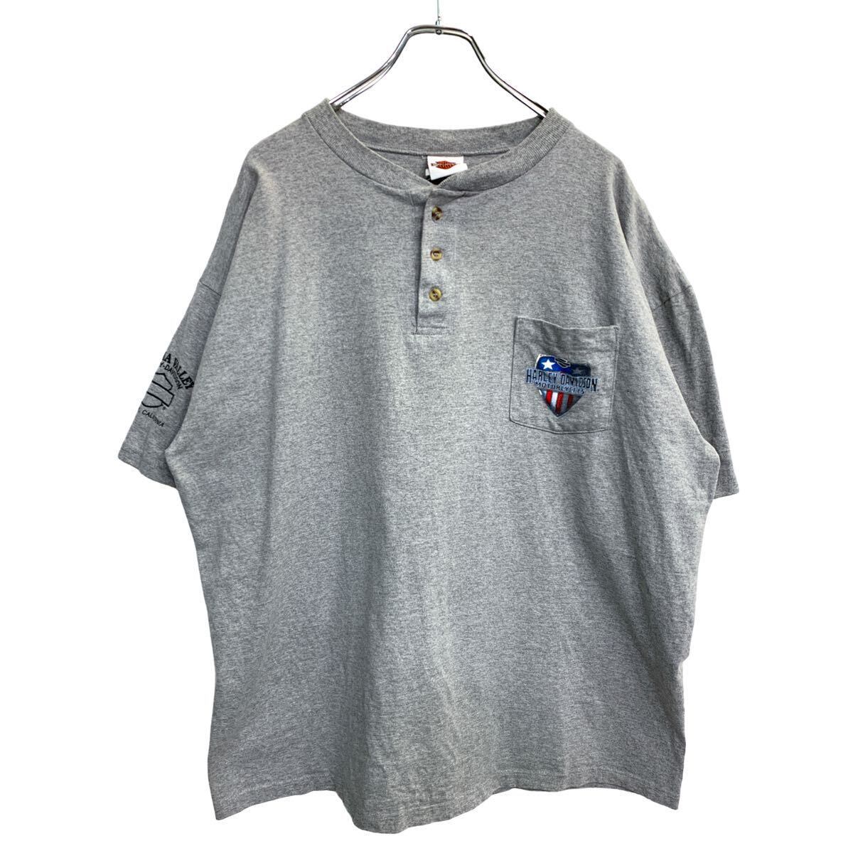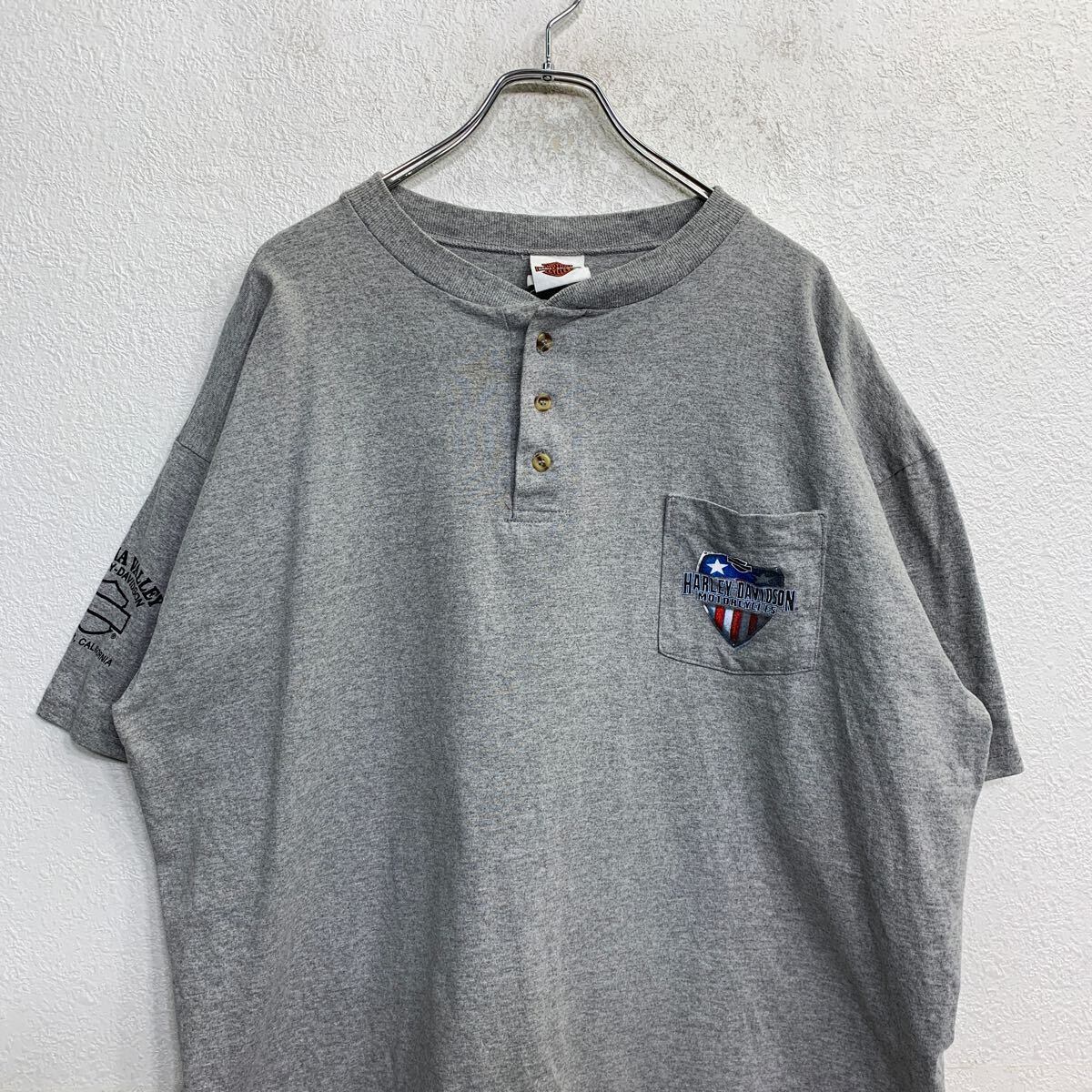 Harley-Davidson 半袖 プリント Tシャツ XXL ハーレーダビッドソン ポケット ハーフボタン グレー USA製 古着卸 アメリカ仕入 t2407-4517