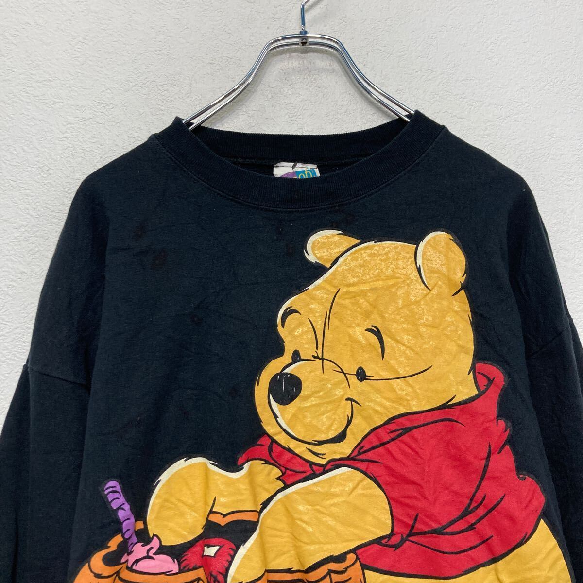 Pooh プリント スウェット トレーナー L ブラック プーさん ディズニー レディース 古着卸 アメリカ仕入 a607-6936