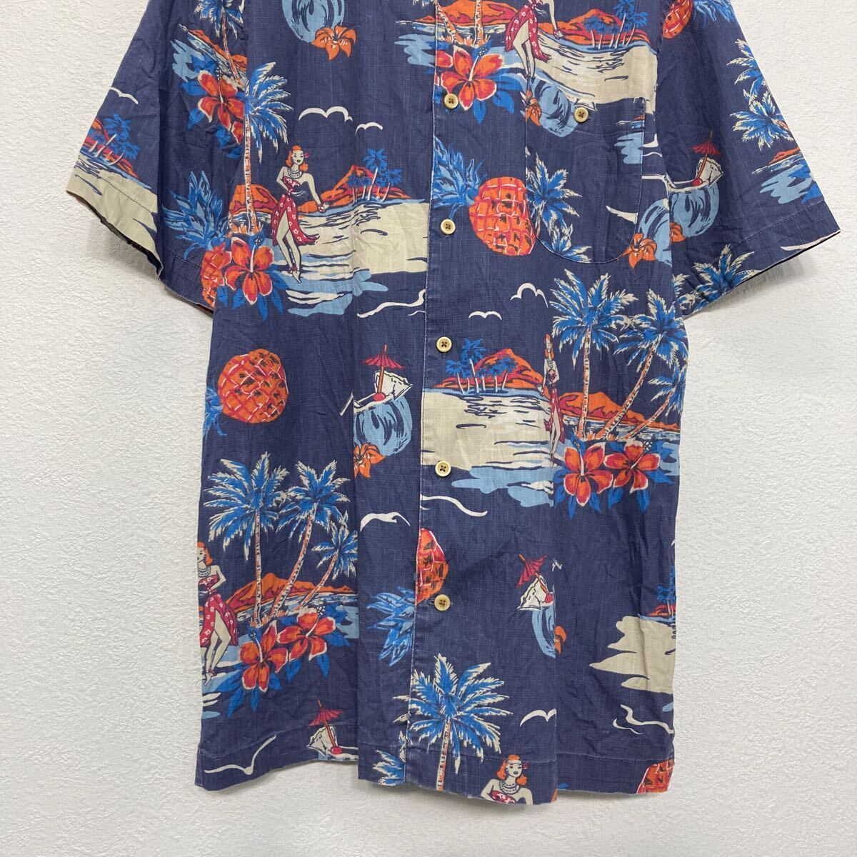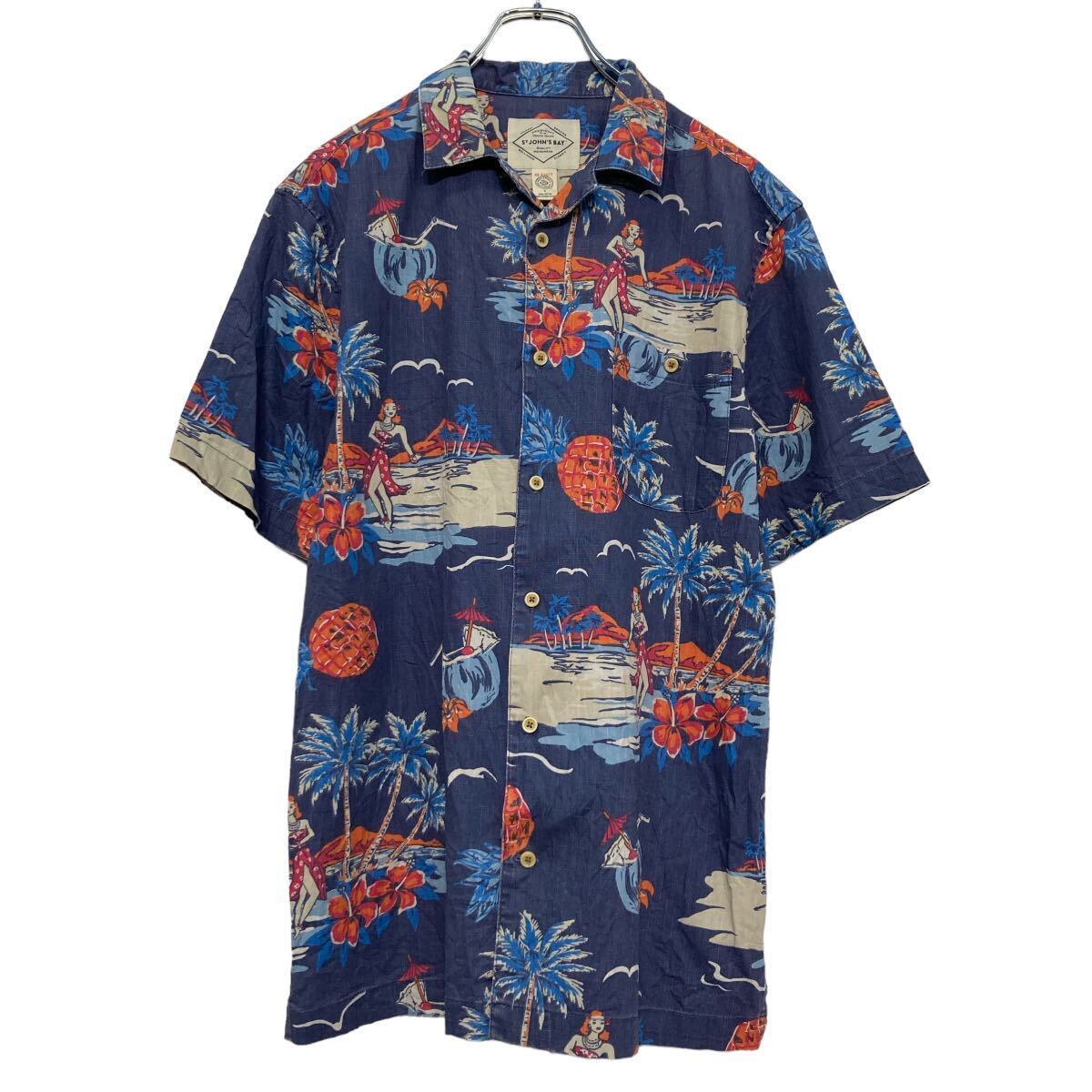 St. John’s Bay 半袖 柄 シャツ ブルー 開襟シャツ オープンカラー ハワイ アロハ ポケット 古着卸 アメリカ仕入 a608-5260