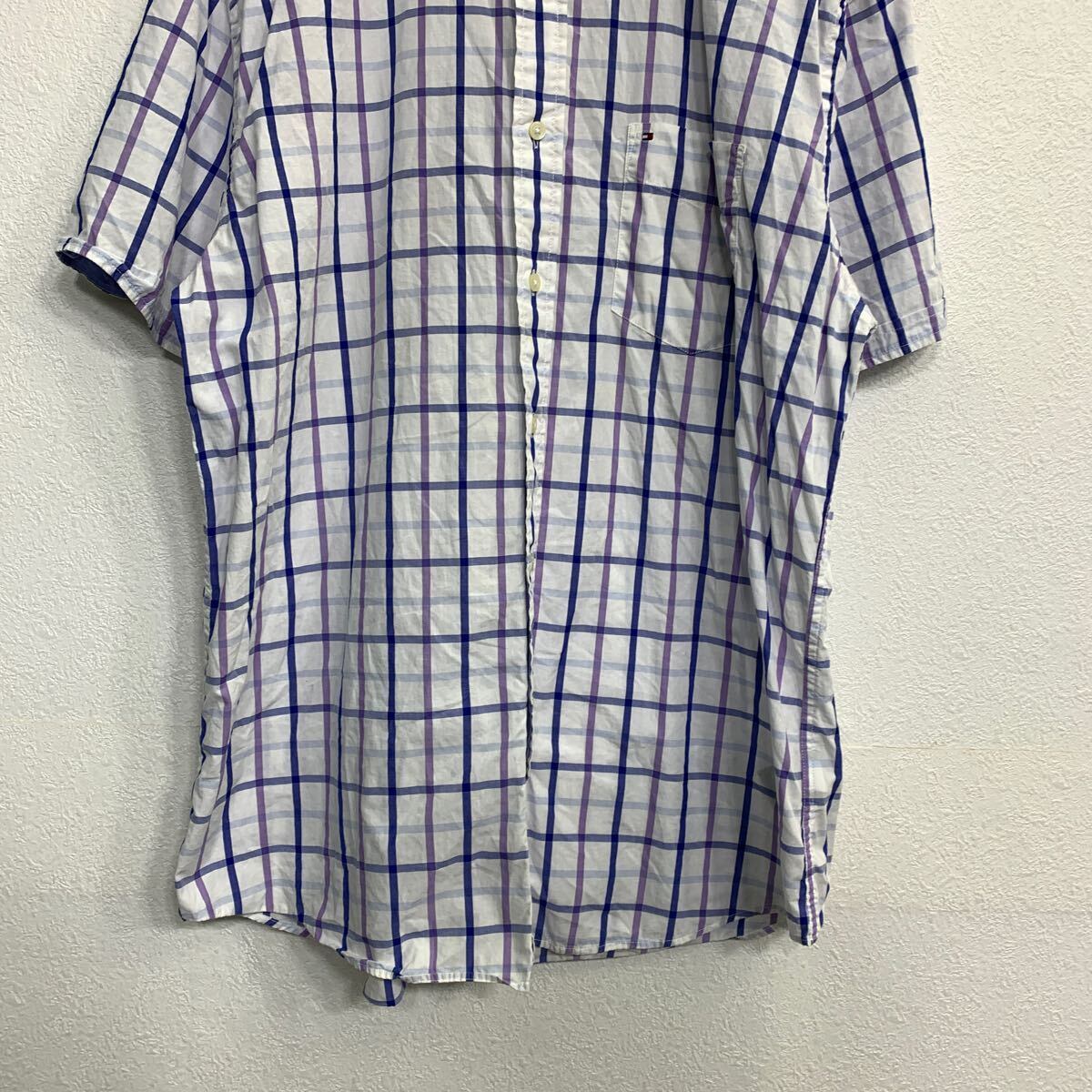 TOMMY HILFIGER 半袖チェックシャツ XLサイズ トミーヒルフィガー ボタンダウン ブルー パープル 古着卸 アメリカ仕入 t2408-3148