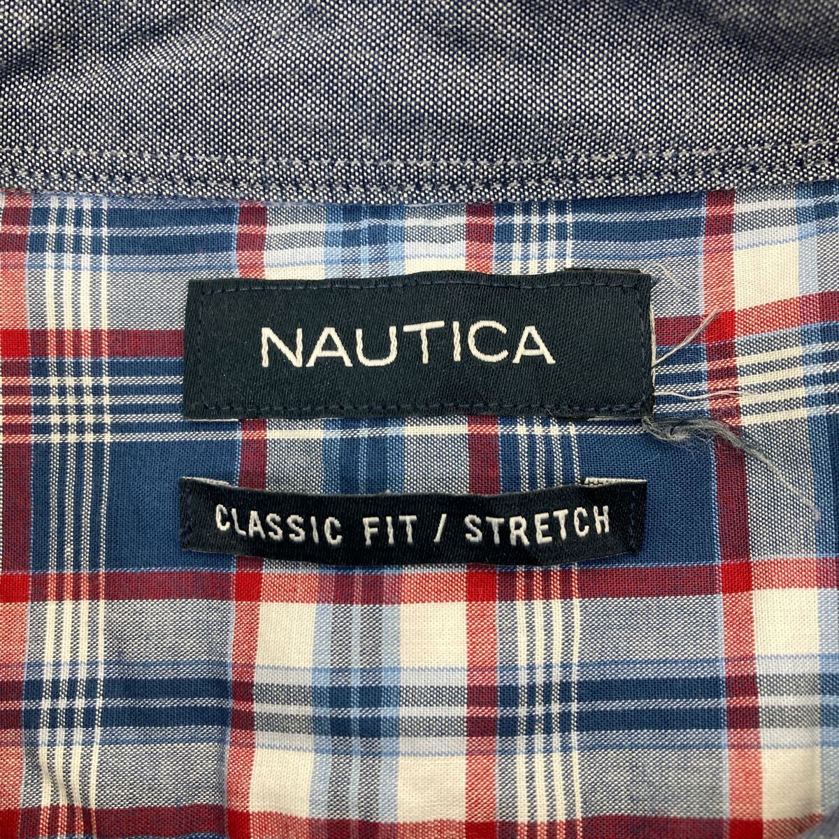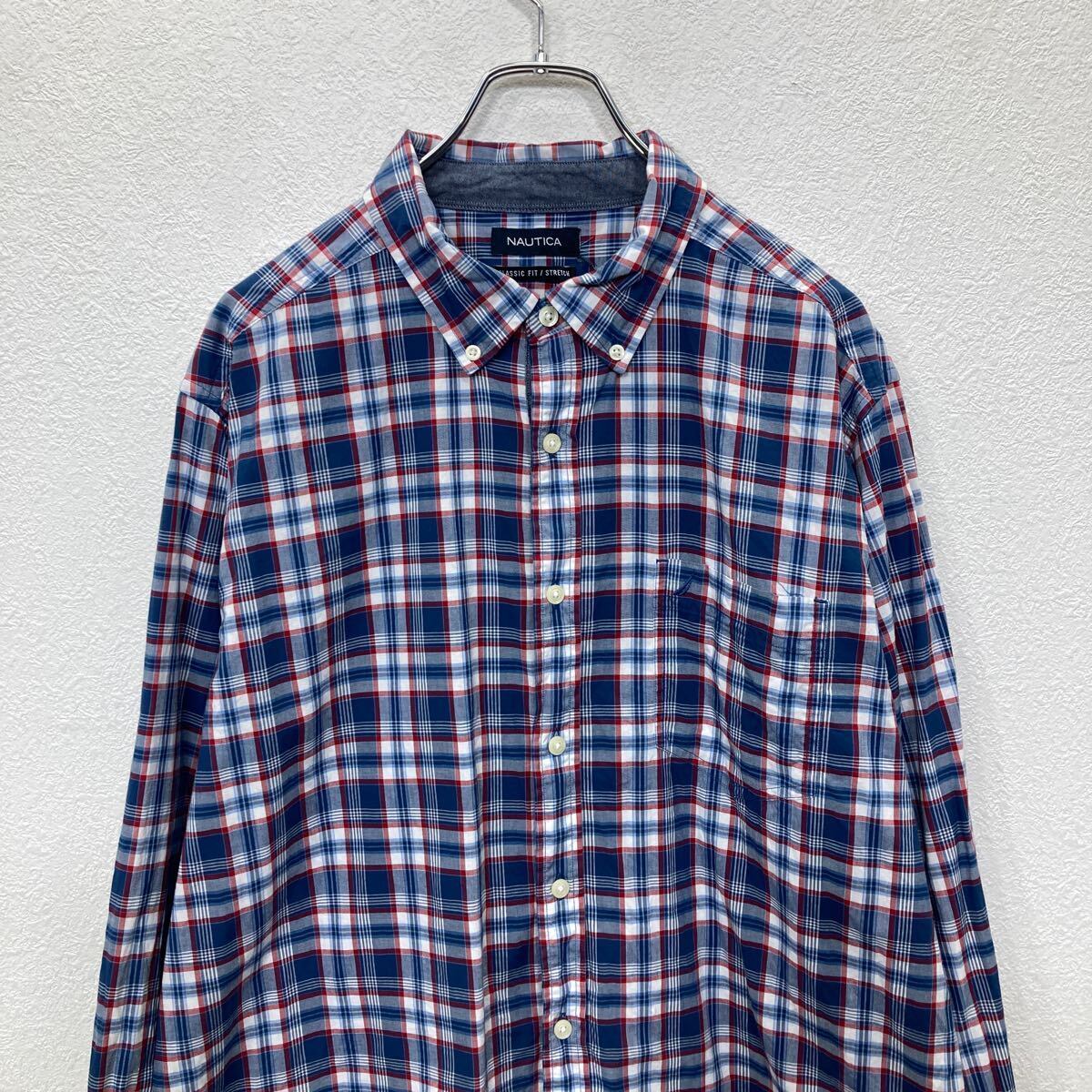 nautica 長袖 シャツ L ノーティカ 胸ポケット チェック柄 ダウンシャツ カスタムフィット ブルー レッド 古着卸 アメリカ仕入 t2408-3205