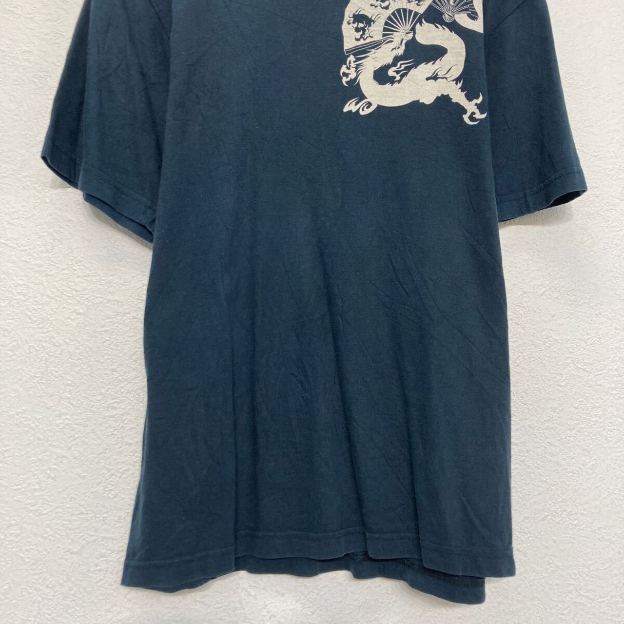 紅雀 半袖 プリント Tシャツ M ブラック パックプリント 和柄 扇子 龍 ドラゴン クルーネック 古着卸 アメリカ仕入 a608-5366
