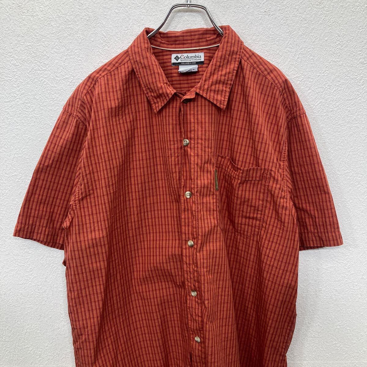 Columbia 半袖 シャツ Lサイズ コロンビア 胸ポケット チェック柄 オレンジ 古着卸 アメリカ仕入 t2408-3357