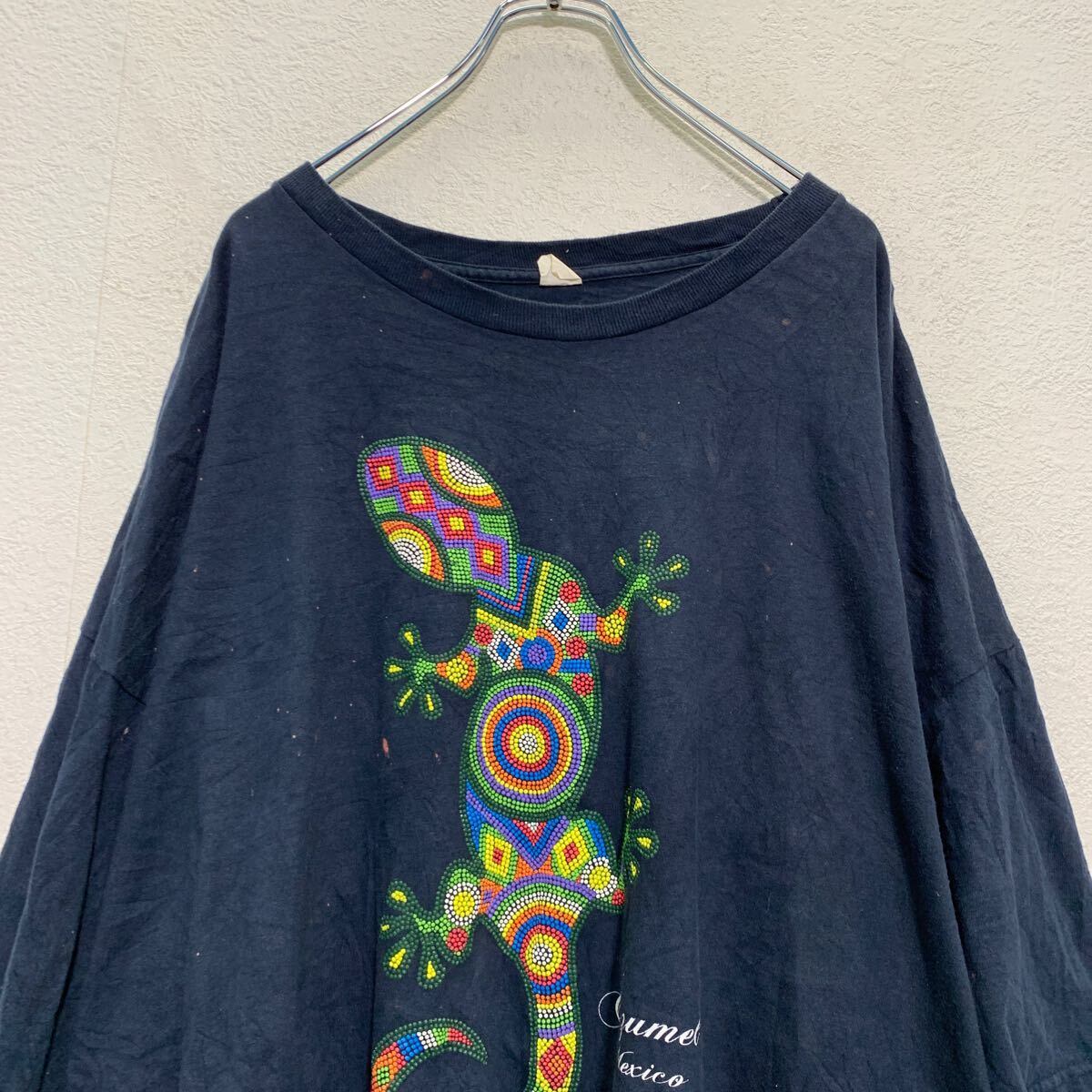 半袖 プリントTシャツ 3XL ネイビー メキシコ製 ビッグサイズ リザード 蜥蜴 クルーネック 古着卸 アメリカ仕入 a608-5648