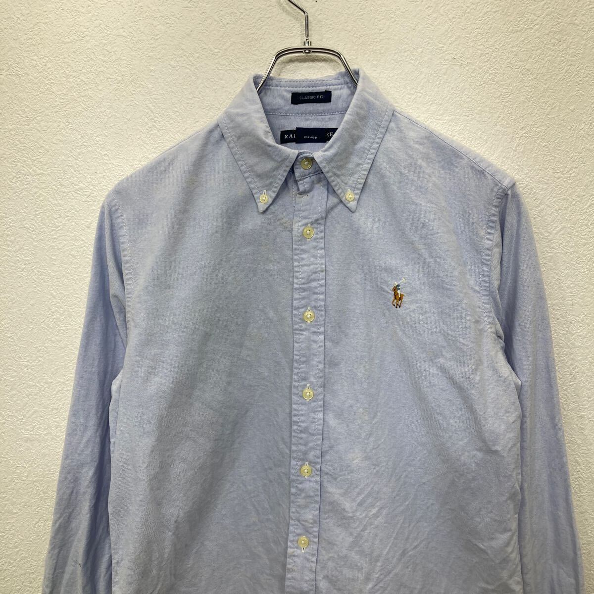 RalphLauren 長袖シャツ L ラルフローレン 刺繍 ボタンダウン カスタムフィット ライトブルー コットン 古着卸 アメリカ仕入 t2408-3587