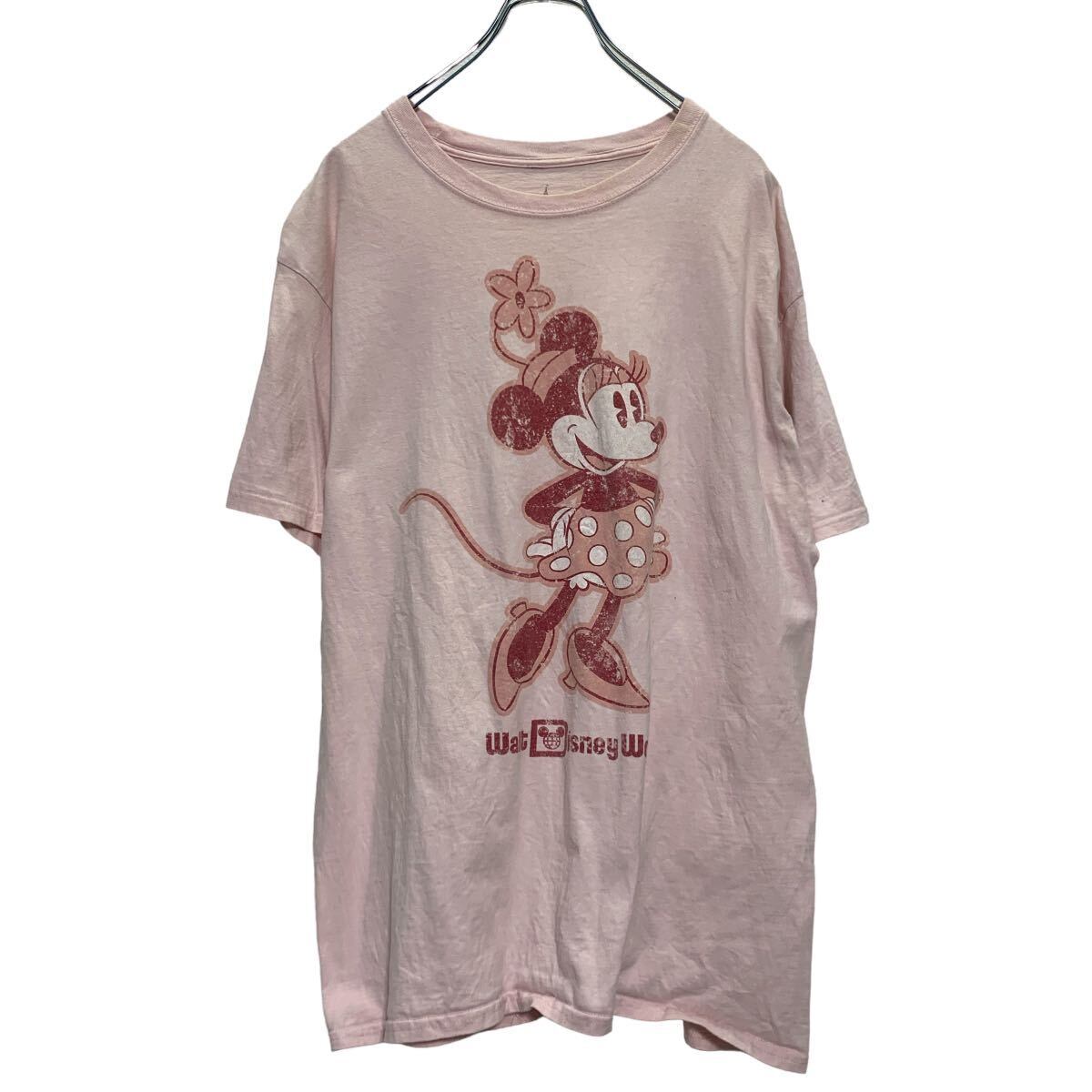 Disney 半袖 キャラクター プリントTシャツ XL〜 ライトピンク ディズニー クルーネック ミニー 古着卸 アメリカ仕入 a608-6002