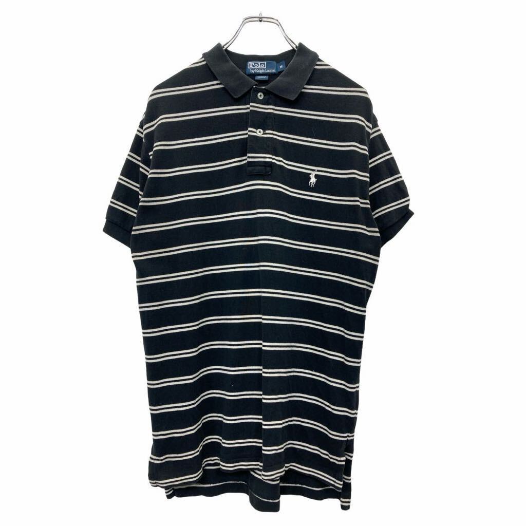 Polo Ralph Lauren 半袖 ポロシャツ M ポロラルフローレン 刺繍 ボーダー ハーフボタン ブラック コットン 古着卸 アメリカ仕入 t2408-3785
