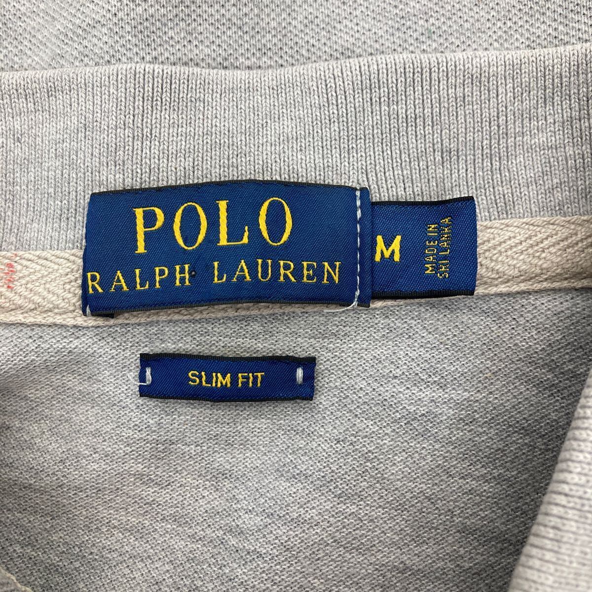 Polo Ralph Lauren 半袖ポロシャツ Mサイズ ポロラルフローレン 刺繍 スリムフィット ハーフボタン グレー 古着卸 アメリカ仕入 t2408-3801