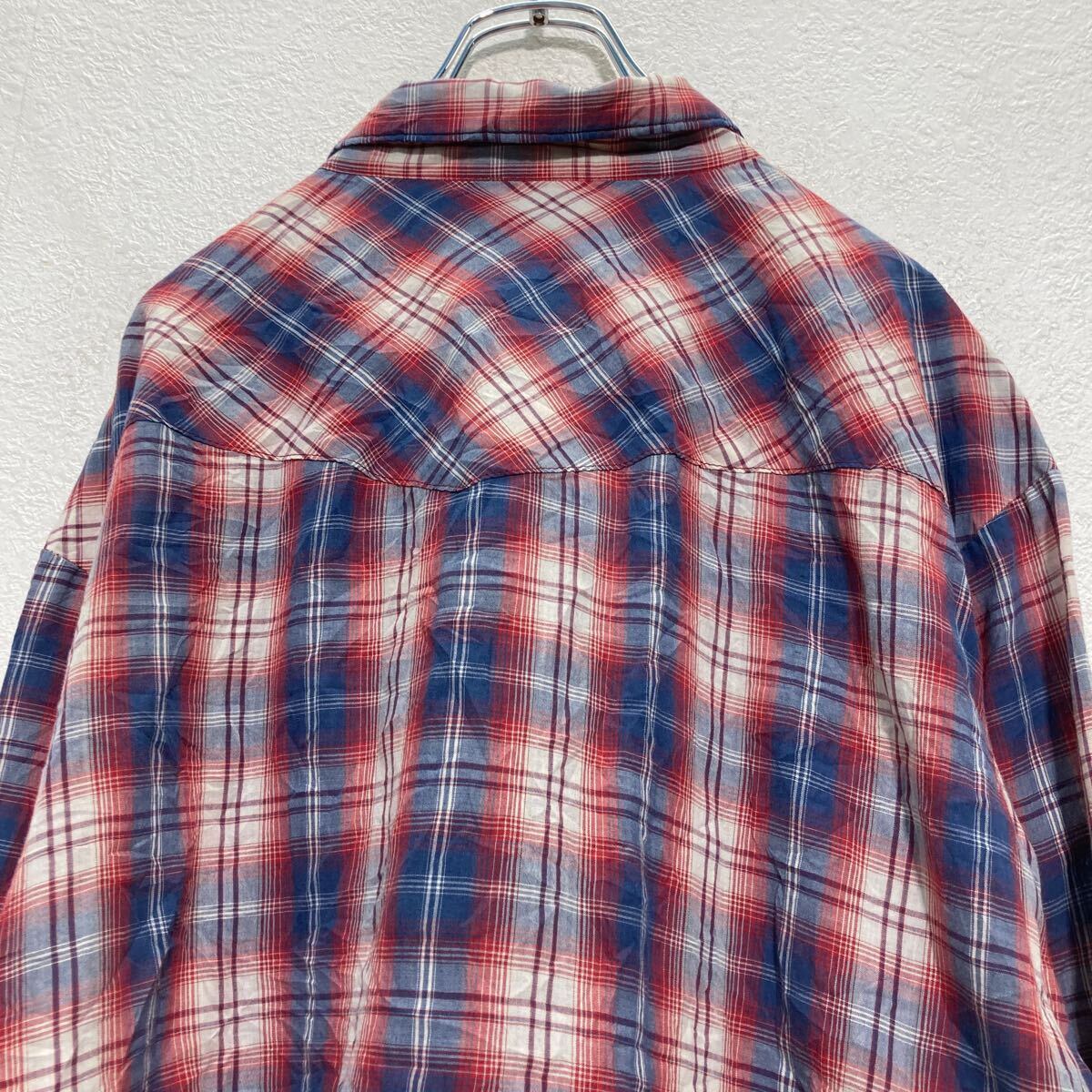 Wrangler 長袖 チェック ウエスタンシャツ XL レッド ネイビー ラングラー 90's スナップボタン 古着卸 アメリカ仕入 a608-6312