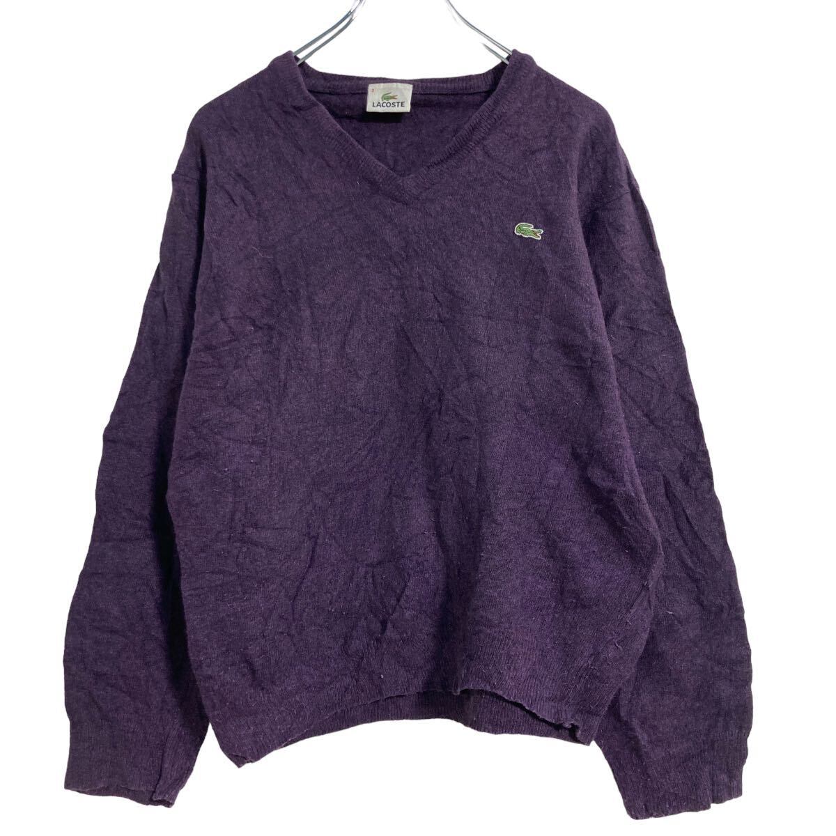 LACOSTE ニット セーター S〜 パープル ラコステ Vネック ワンポイントロゴ 古着卸 アメリカ仕入 a608-6451