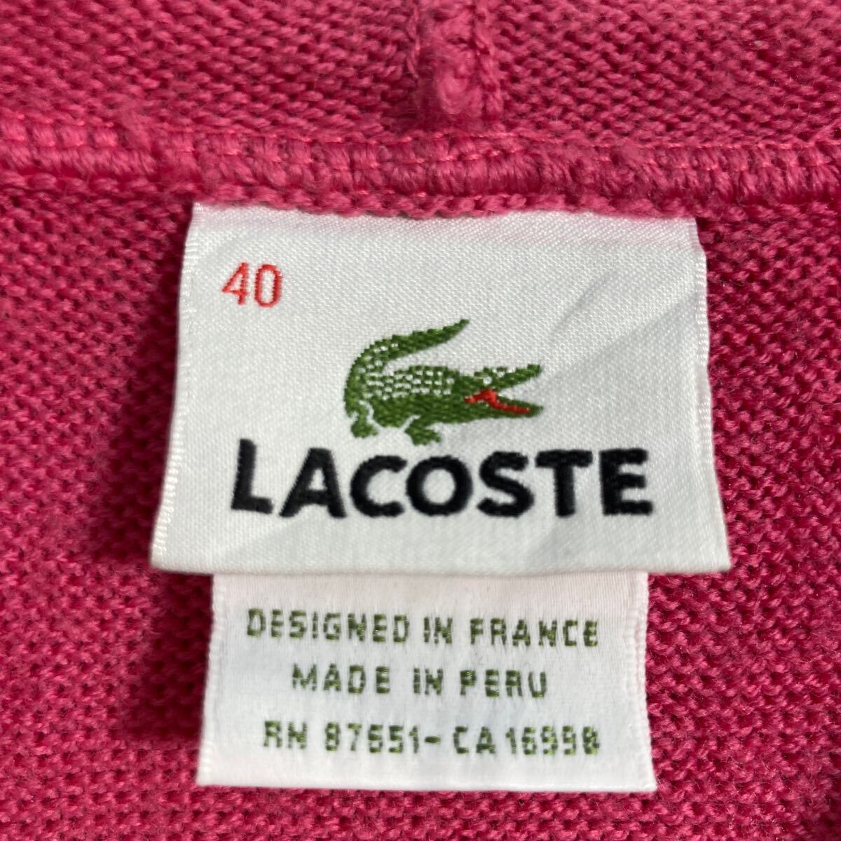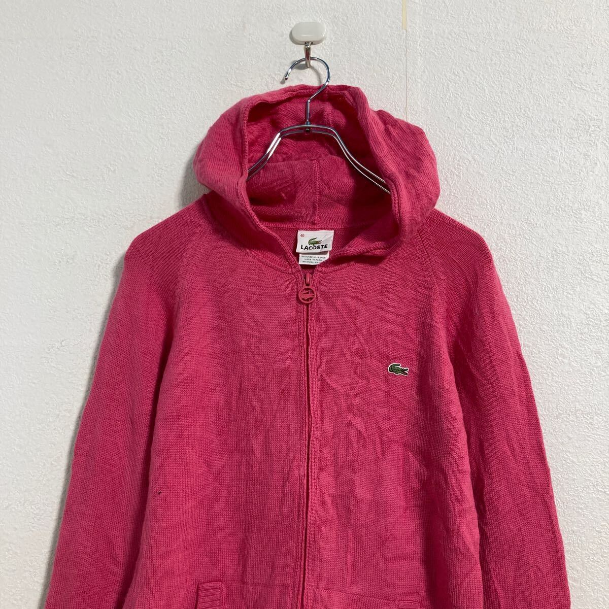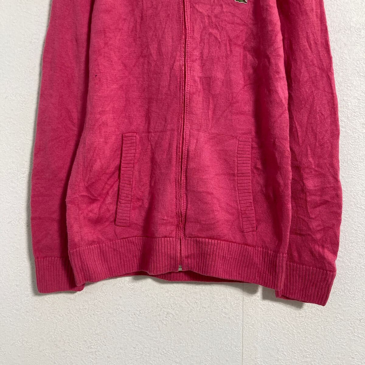 LACOSTE ウール ニット セーター パーカー レディース M ピンク ラコステ ジップアップ 古着卸 アメリカ仕入 a608-6453