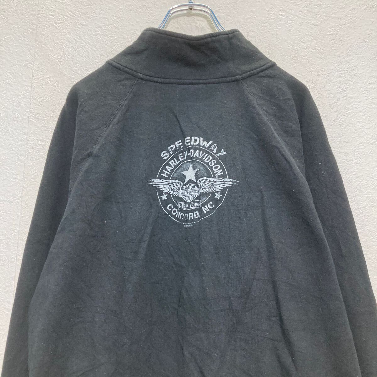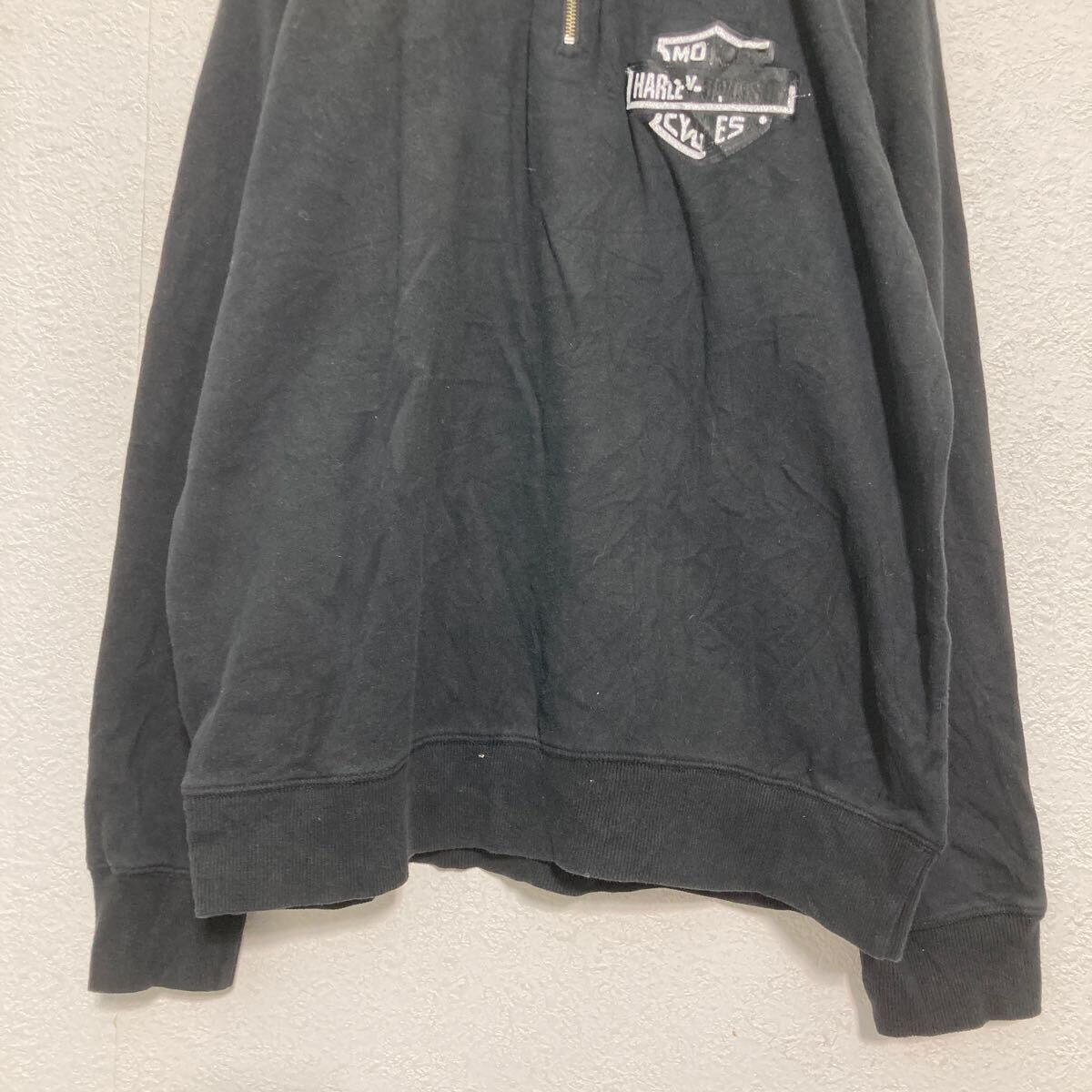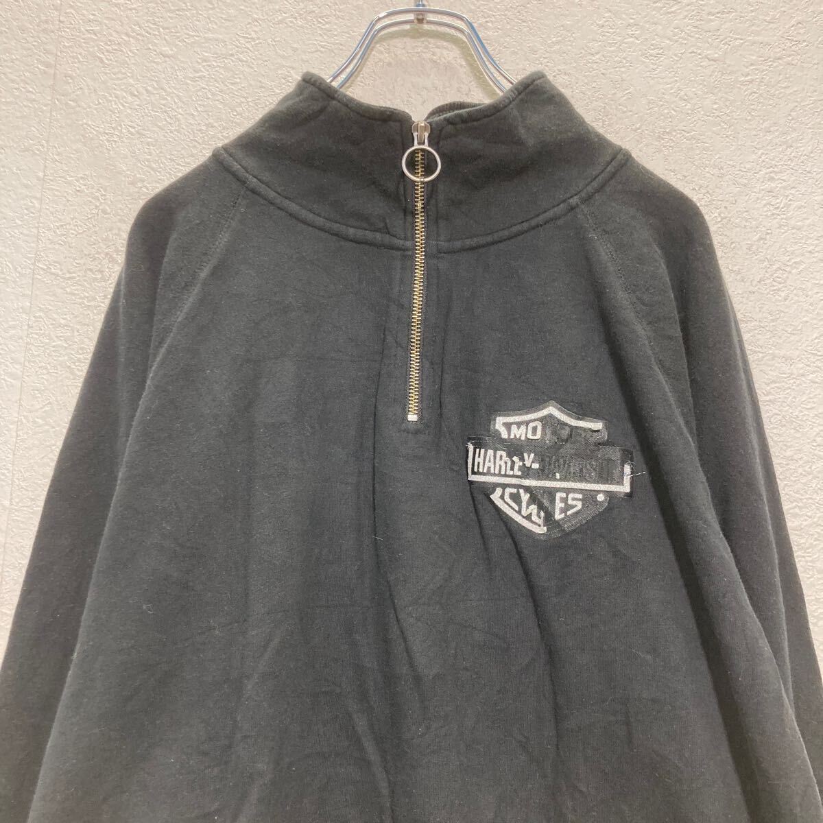 HARLEY DAVIDSON ハーフジップ プリントスウェット トレーナー L ブラック ハーレーダビッドソン 裏起毛 古着卸 アメリカ仕入 a608-6467