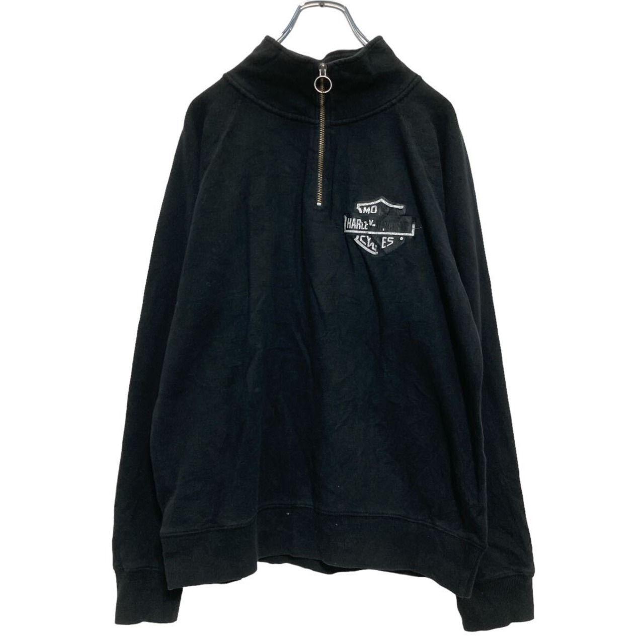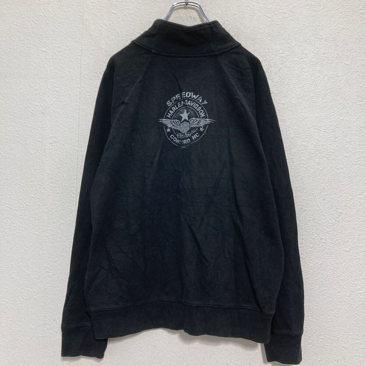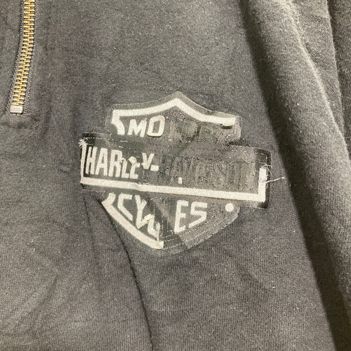 HARLEY DAVIDSON ハーフジップ プリントスウェット トレーナー L ブラック ハーレーダビッドソン 裏起毛 古着卸 アメリカ仕入 a608-6467