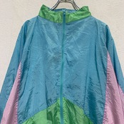 ジップアップ 切替 ナイロンジャケット M ライトブルー ピンク グリーン レトロ ポリエステル 古着卸 アメリカ仕入 a608-6853