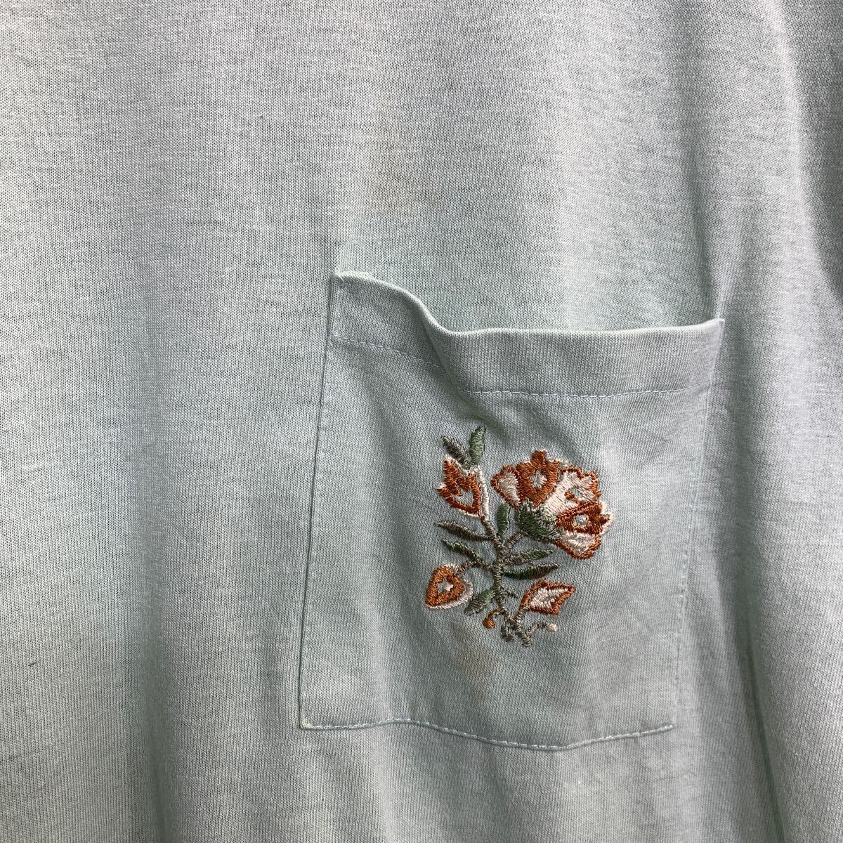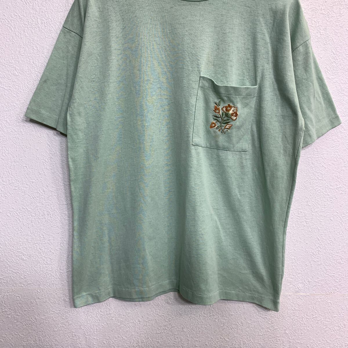 Tanzerina 半袖 Tシャツ Mサイズ シングルステッチ ポケット 刺繍 ライトグリーン 古着卸 アメリカ仕入 t2409-3289