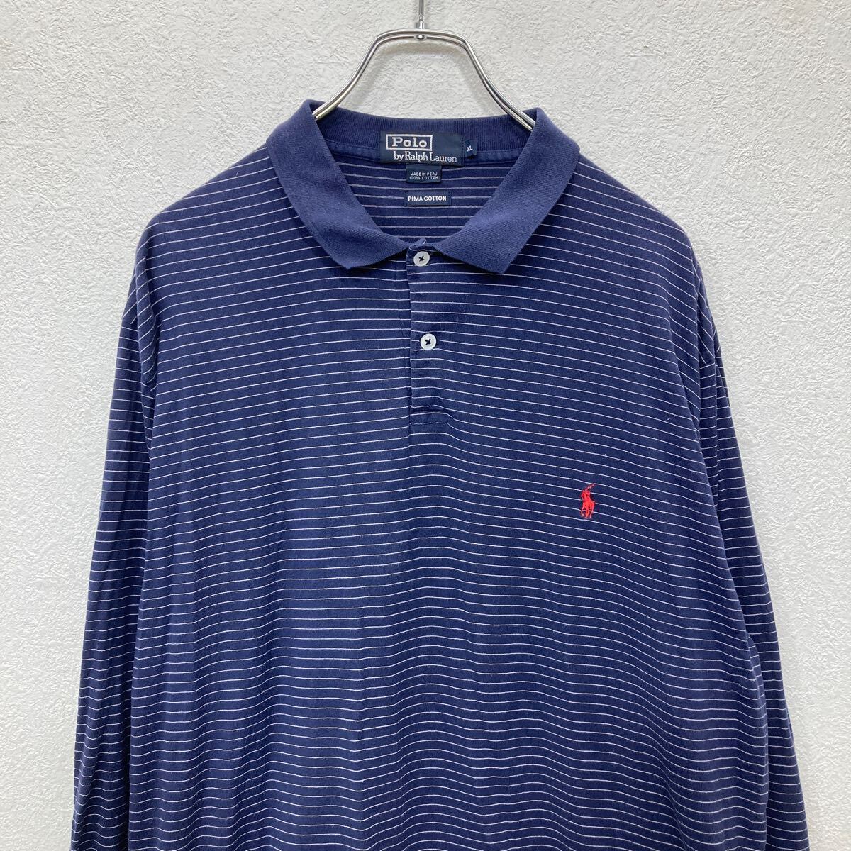 Polo Ralph Lauren 長袖 ポロシャツ XL ポロラルフローレン ボーダー ハーフボタン ネイビー コットン 古着卸 アメリカ仕入 t2409-3464