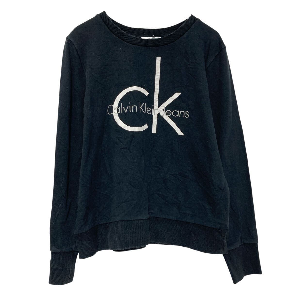 Calvin Klein Jeans プリント スウェット トレーナー キッズ L ブラック ロゴ 古着卸 アメリカ仕入 a609-5714