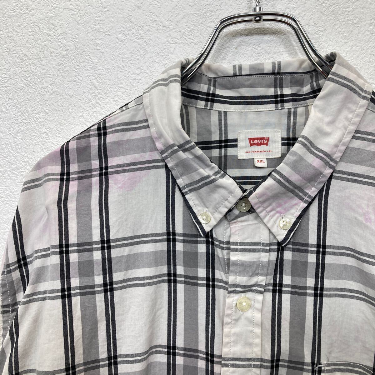 Levi's 長袖 シャツ XXL リーバイス ビッグサイズ 胸ポケット ボタンダウン チェック柄 ホワイト グレー 古着卸 アメリカ仕入 t2409-3602