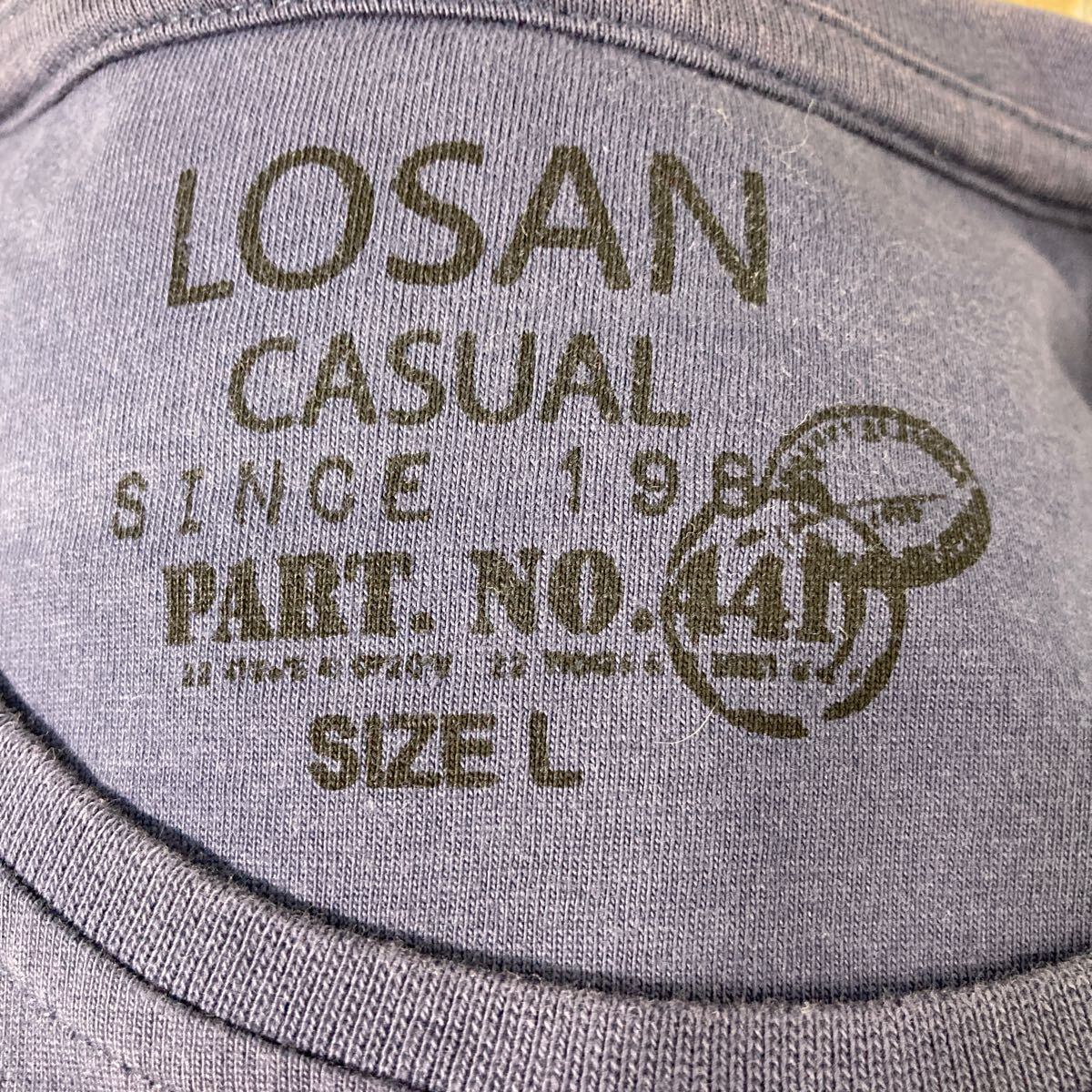 LOSAN 長袖 プリントTシャツ L ブルーグレー ロンT ロングTシャツ 車 古着卸 アメリカ仕入 a609-5855