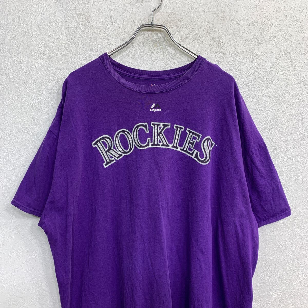 Majestic 半袖 プリント Tシャツ 2XLサイズ マジェスティック ビッグサイズ パープル 古着卸 アメリカ仕入 t2409-3654