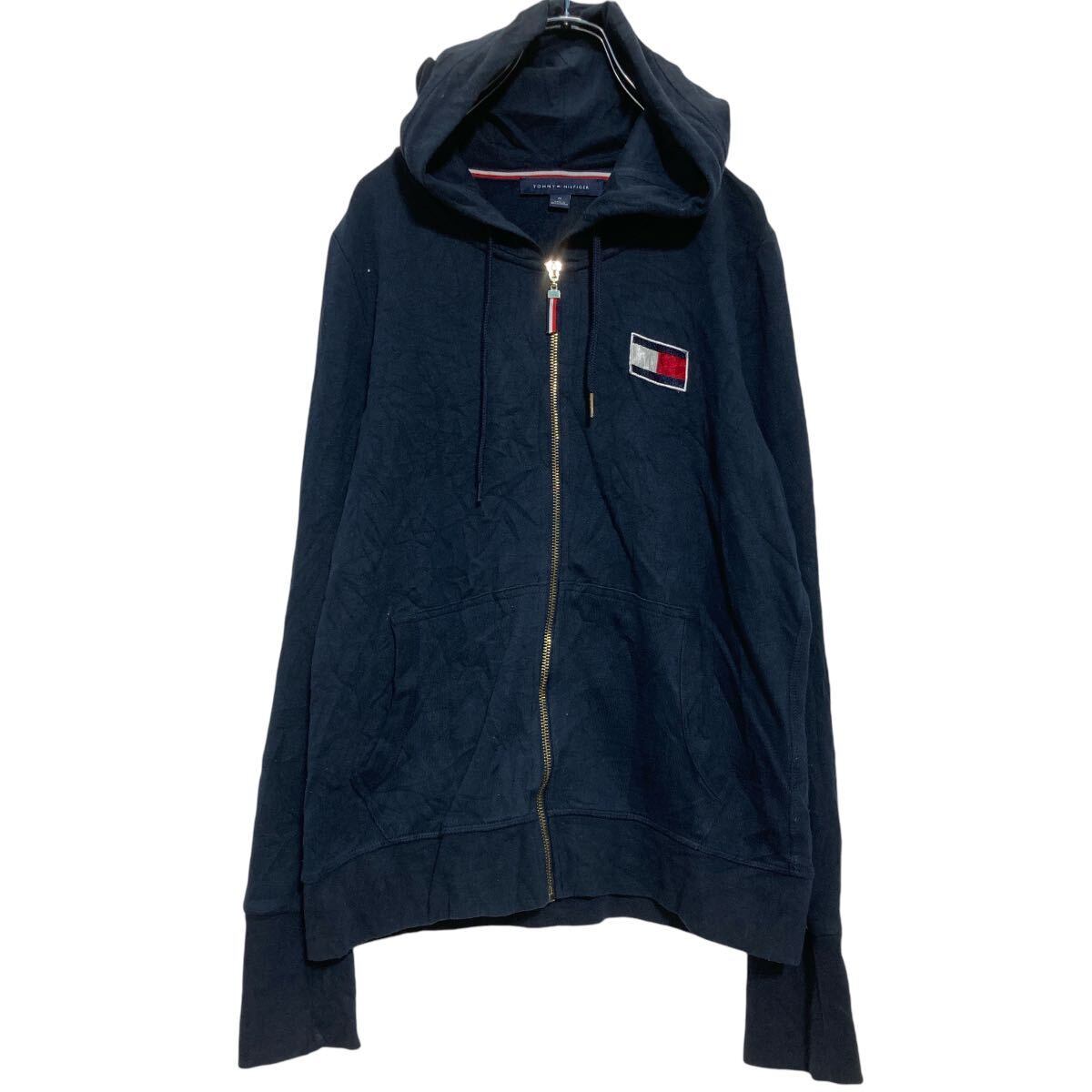 TOMMY HILFIGER ジップアップ ロゴスウェット パーカー M ネイビー トミーヒルフィガー 裏パイル 古着卸 アメリカ仕入 a609-5955