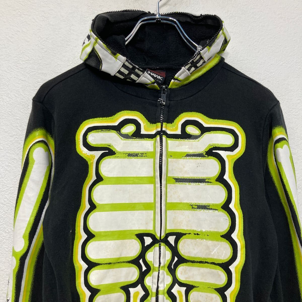 HAWK プリント スウェット パーカー M イラスト ブラック キッズ フルジップ 古着卸 アメリカ仕入 a609-6050