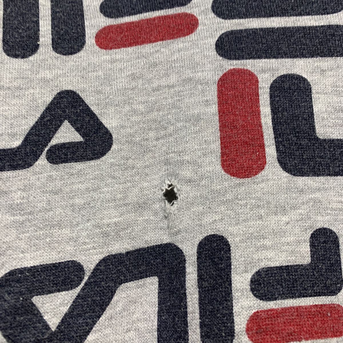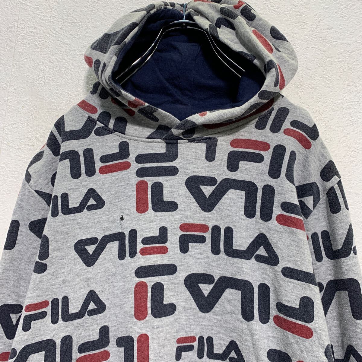 FILA プリントスウェット パーカー XL 160〜 グレー 総柄 フィラ 裏起毛 プルオーバー 古着卸 アメリカ仕入 a609-6659