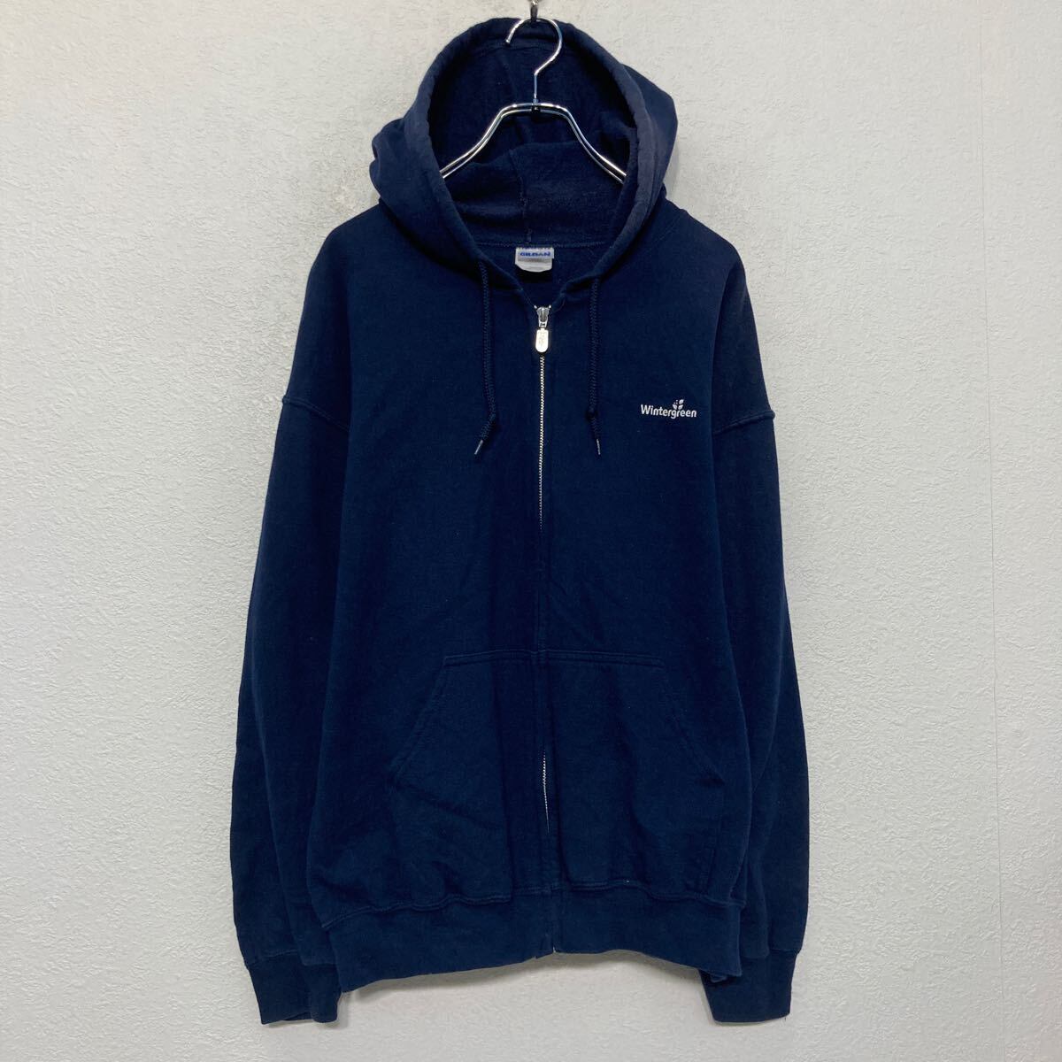 GILDAN プリント スウェット パーカー ギルダン L ネイビー フルジップ 刺繍 古着卸 アメリカ仕入 a609-6876