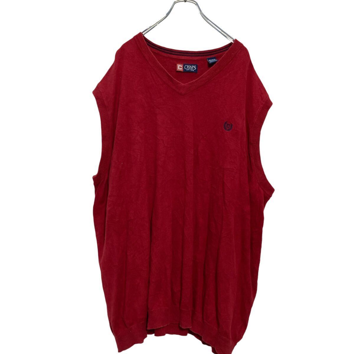CHAPS コットンニット セーター ベスト 4XL レッド チャップス ワンポイントロゴ ビッグサイズ 古着卸 アメリカ仕入 a609-7104