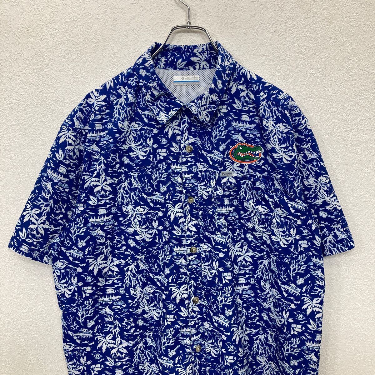 Columbia 半袖 シャツ Lサイズ コロンビア 胸ポケット アロハシャツ ブルー 古着卸 アメリカ仕入 t2409-4174