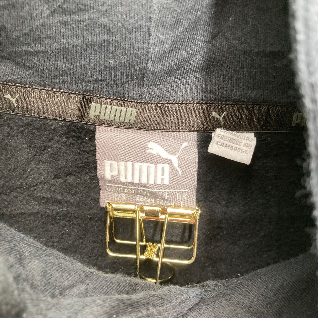PUMA プリント スウェット パーカー プーマ L ブラック プルオーバー 裏起毛 古着卸 アメリカ仕入 a610-5499