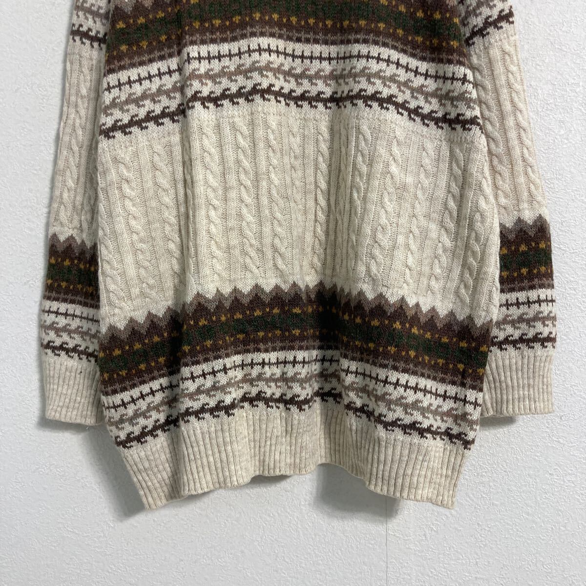 アルパカ混 ニット セーター XL〜 ベージュ ブラウン タートルネック スウェーデン製 古着卸 アメリカ仕入 a610-5667