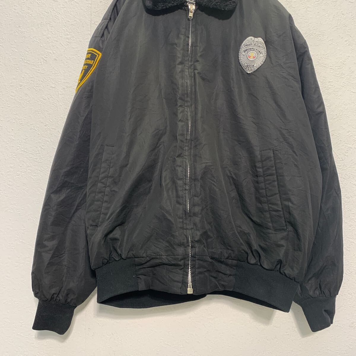 ワーク ジャケット XL サイズ ブラック フルジップ ファー 切替 ワンポイント 刺繍 アームプリント 古着卸 アメリカ仕入 a610-5727