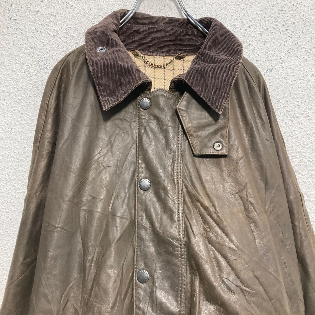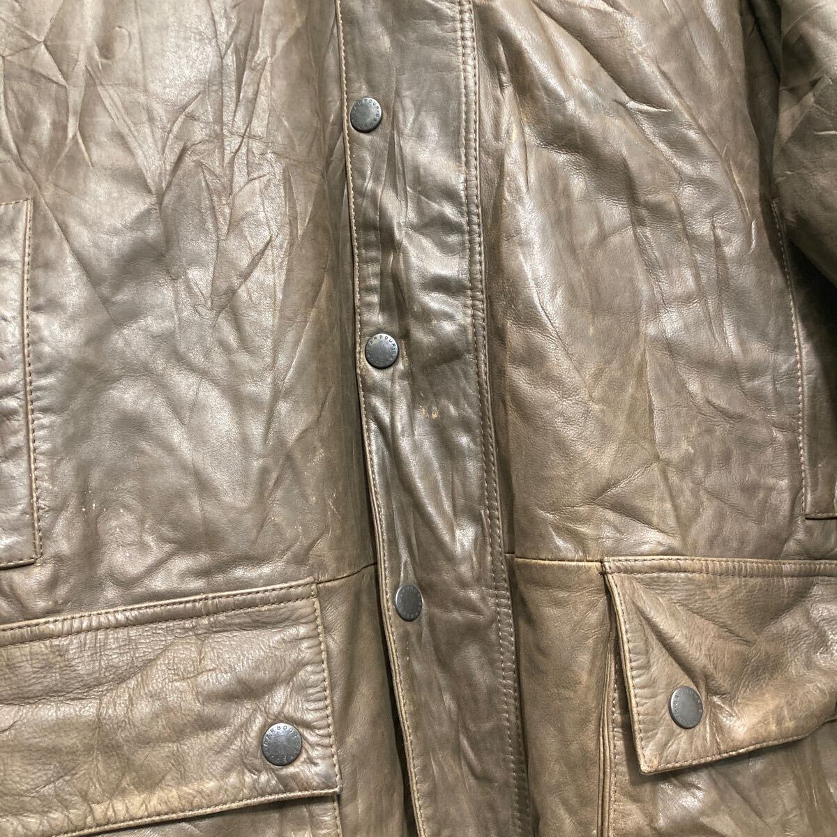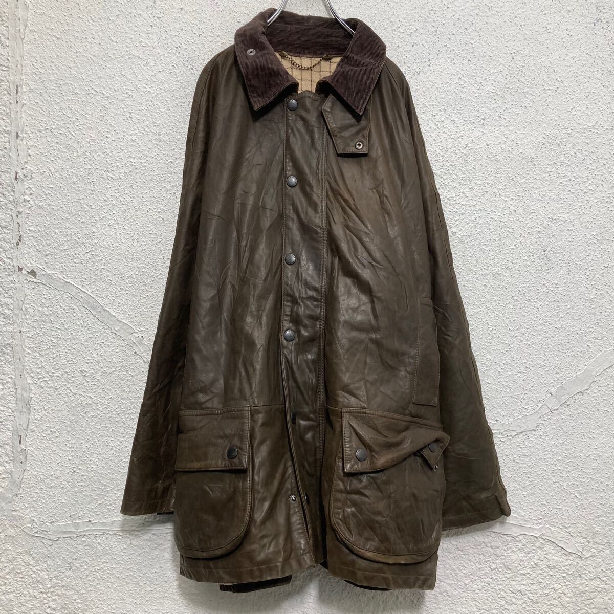 Barbour レザー ジャケット バブアー ダークブラウン XL ビッグサイズ 内側チェック 古着卸 アメリカ仕入 a610-5745