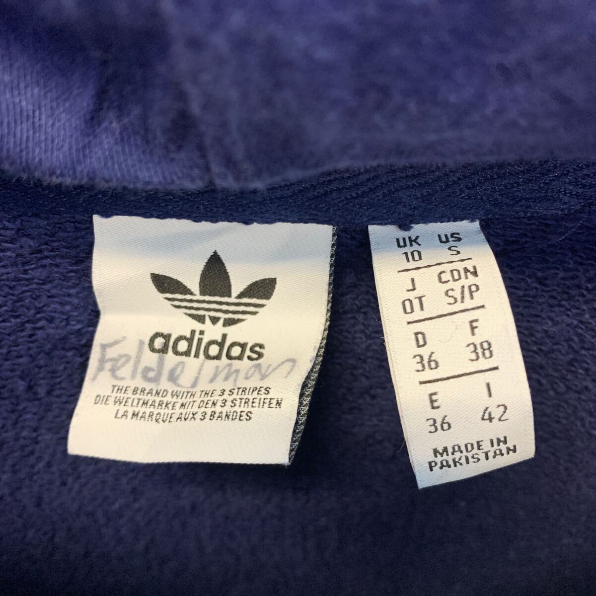 adidas ロゴ スウェット パーカー アディダス S サイズ ネイビー ホワイト プルオーバー ポケット付き 古着卸 アメリカ仕入 a610-6542