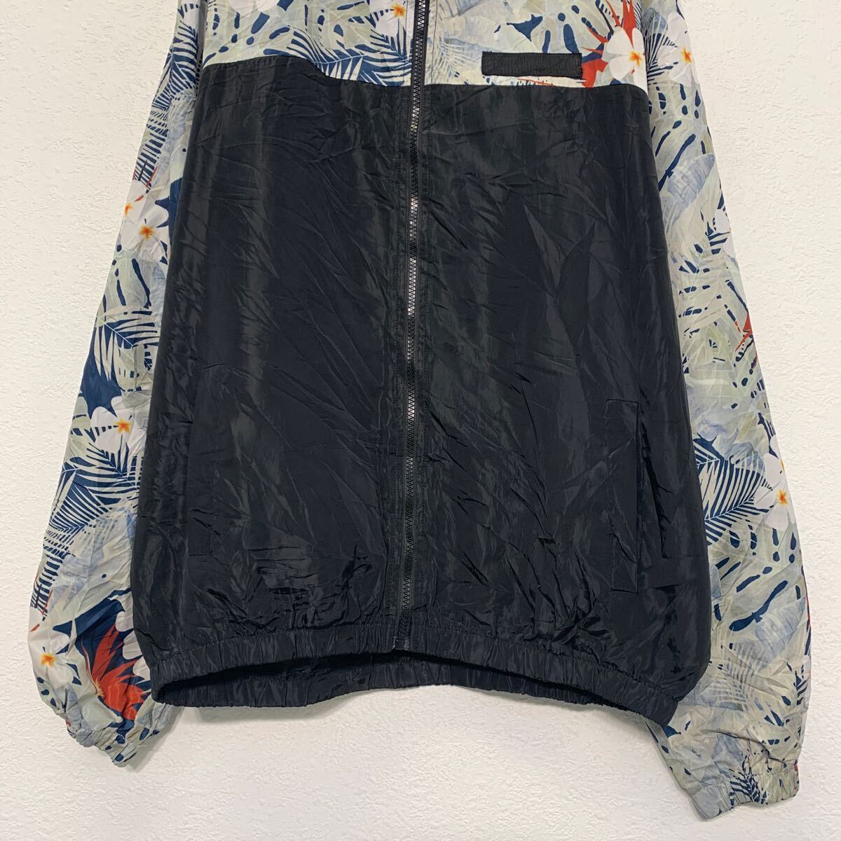 ナイロン ジャケット M ブラック フルジップ フード付き 総柄 花柄 切替 古着卸 アメリカ仕入 a610-6657