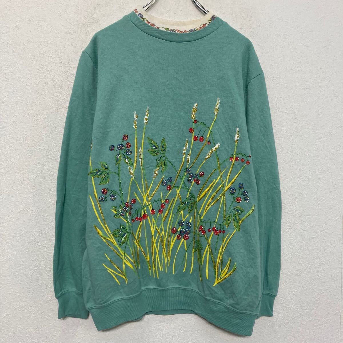 プリント スウェット トレーナー L~ ライトグリーン ダブルネック プルオーバー 古着卸 アメリカ仕入 a610-6821