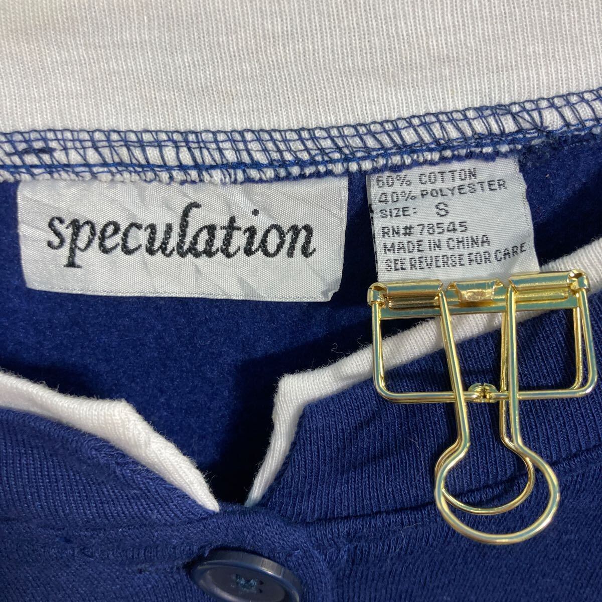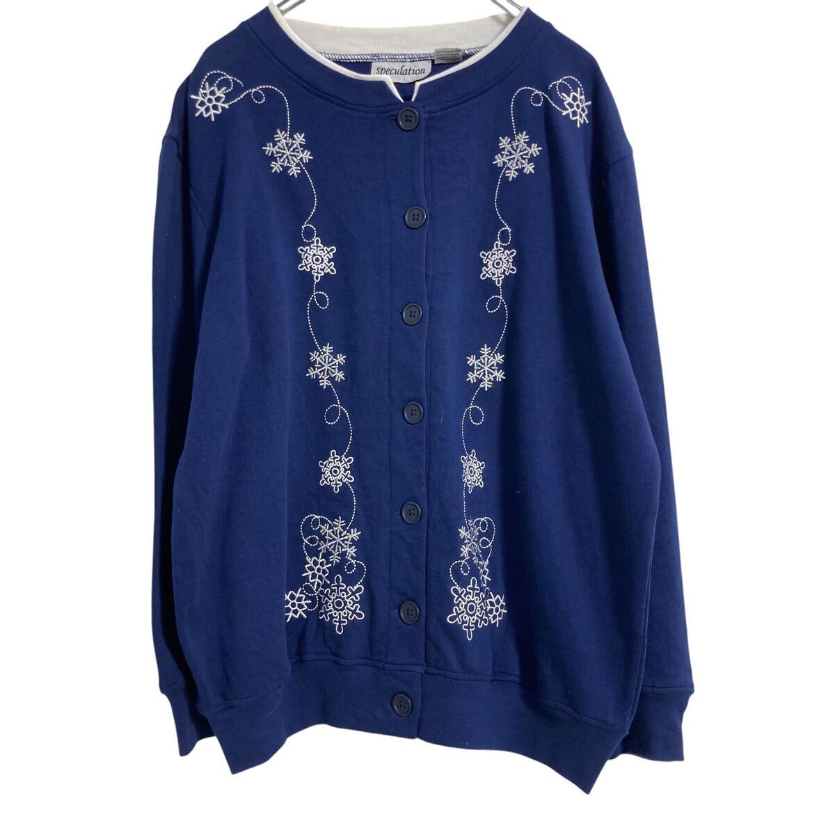 speculation 刺繍 スウェット トレーナー レディース S ネイビー ボタン ダブルネック 裏起毛 古着卸 アメリカ仕入 a610-7254