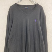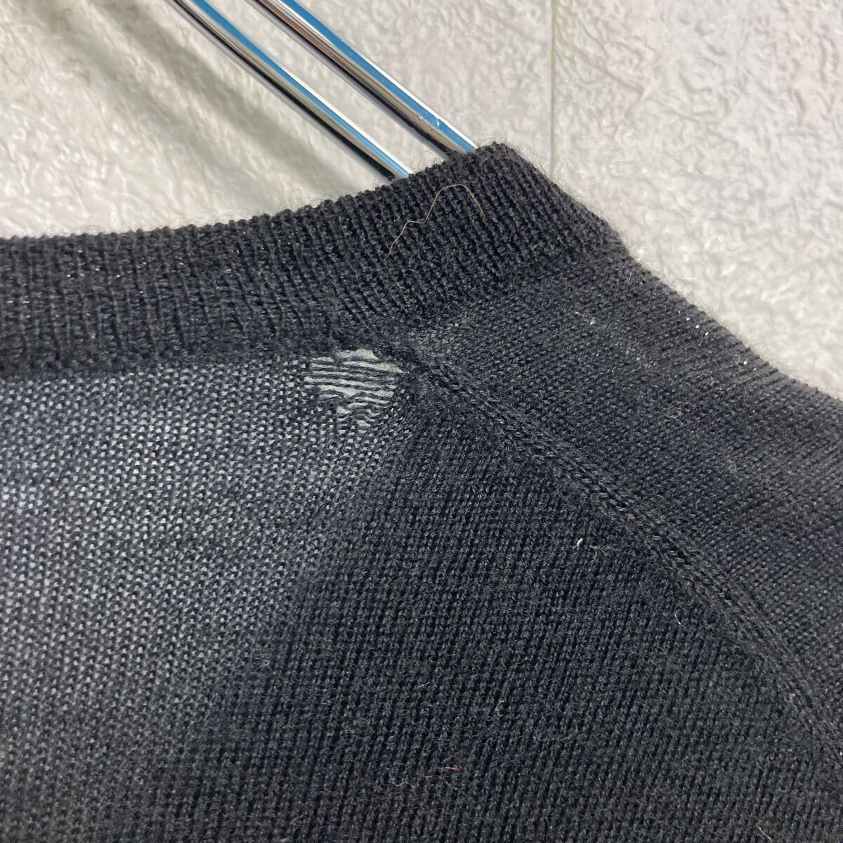 ウール ニット セーターXL〜 ブラック Vネック ワンポイントロゴ 薄手 古着卸 アメリカ仕入 a610-7333