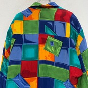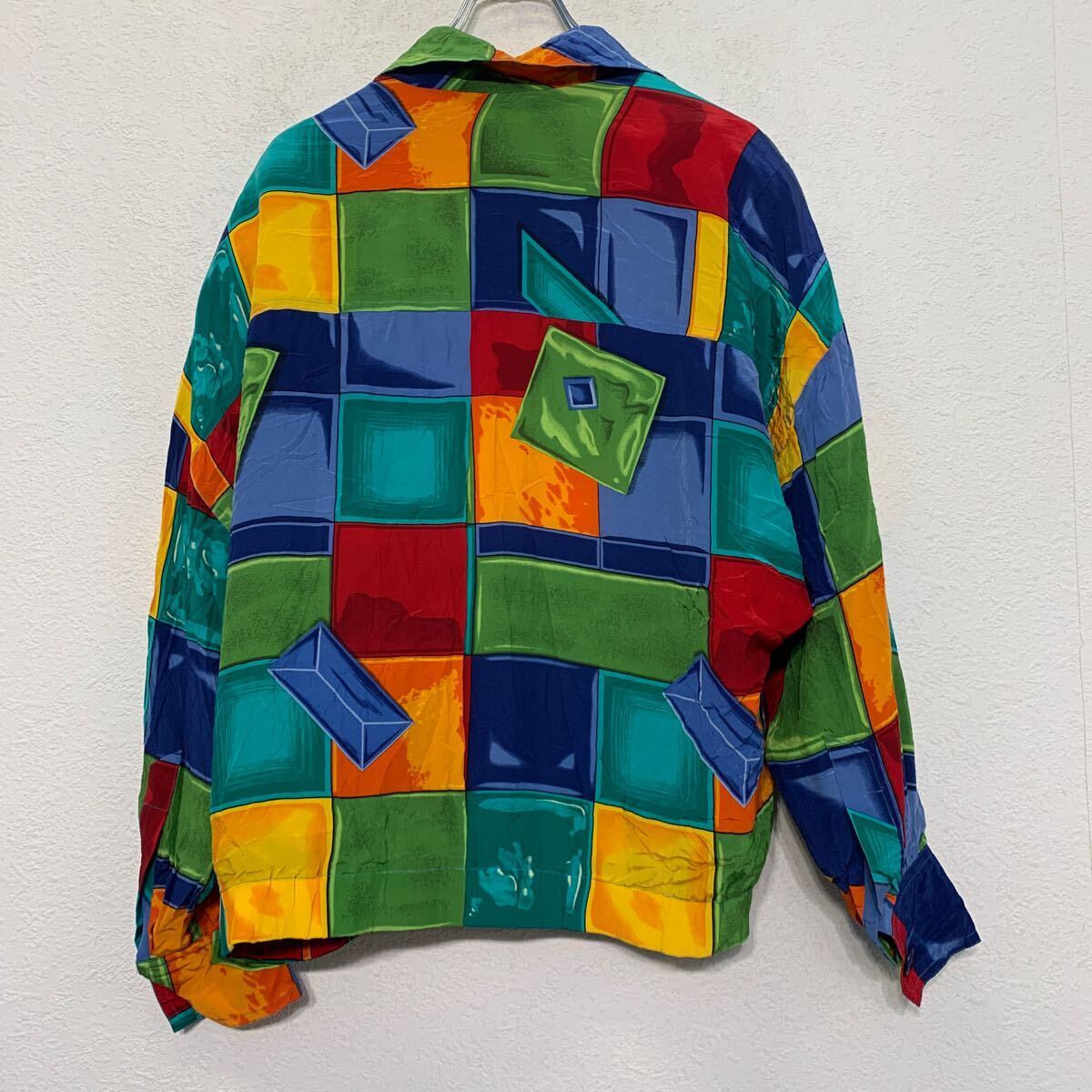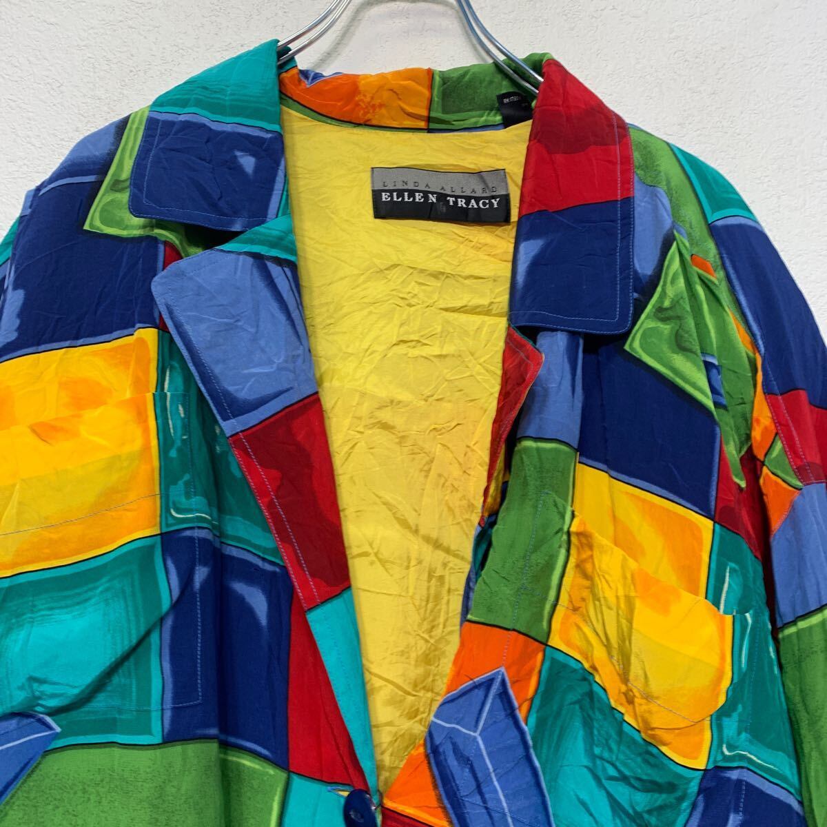 テーラード風 ジャケット M 程 マルチカラー ボタン リネン 総柄 薄手 古着卸 アメリカ仕入 a610-7357