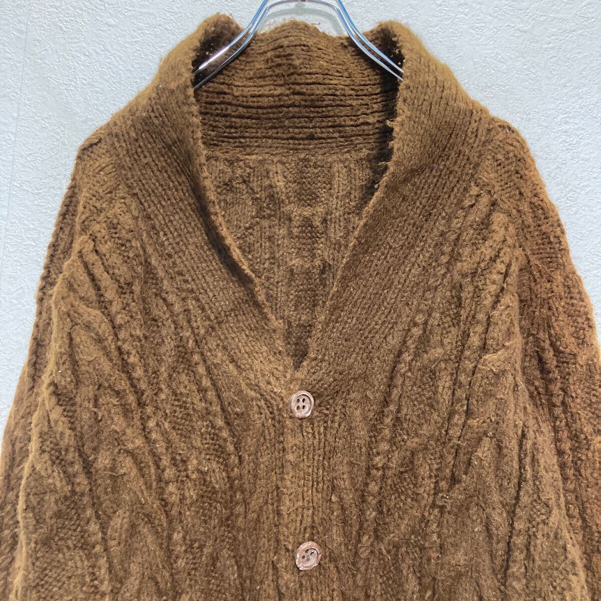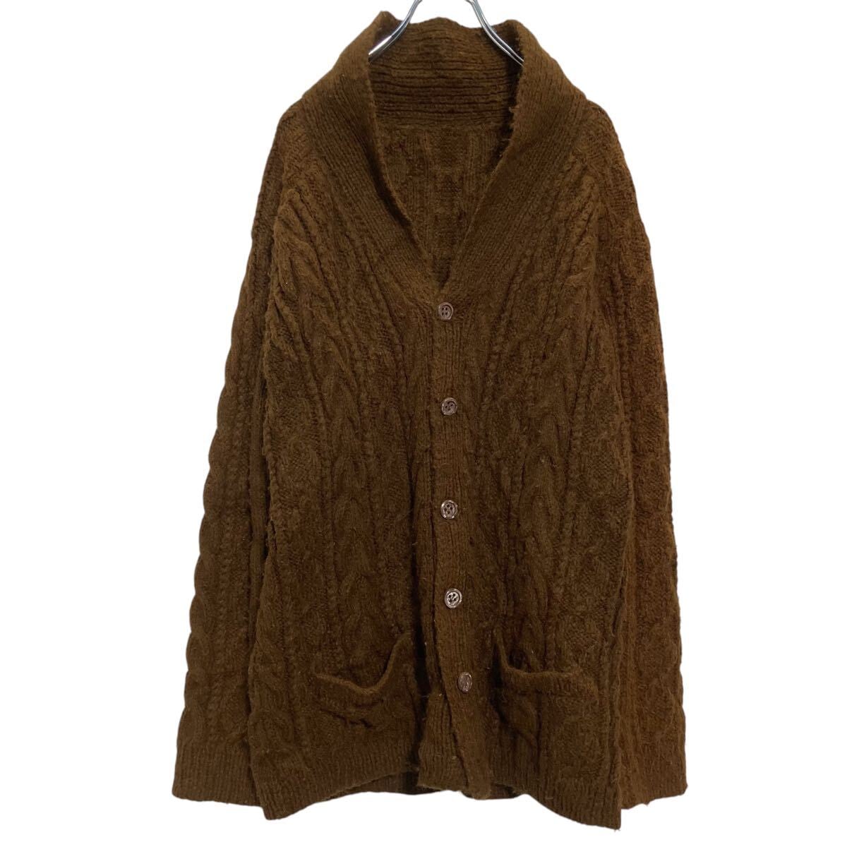 ケーブル編み ニット セーター カーディガン 2XL〜 ブラウン ハンドメイド 古着卸 アメリカ仕入 a610-7386