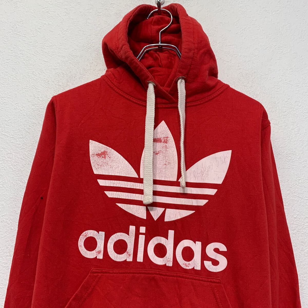 adidas ロゴ スウェット パーカー アディダス S レッド ホワイト プルオーバー ポケット付き 古着卸 アメリカ仕入 a610-7574