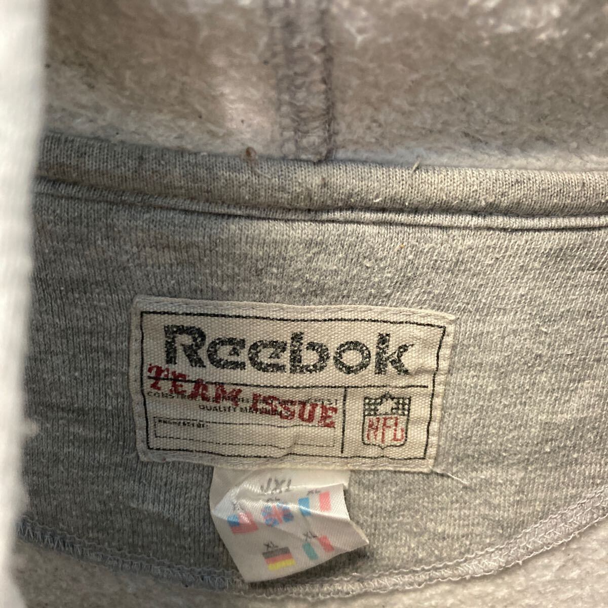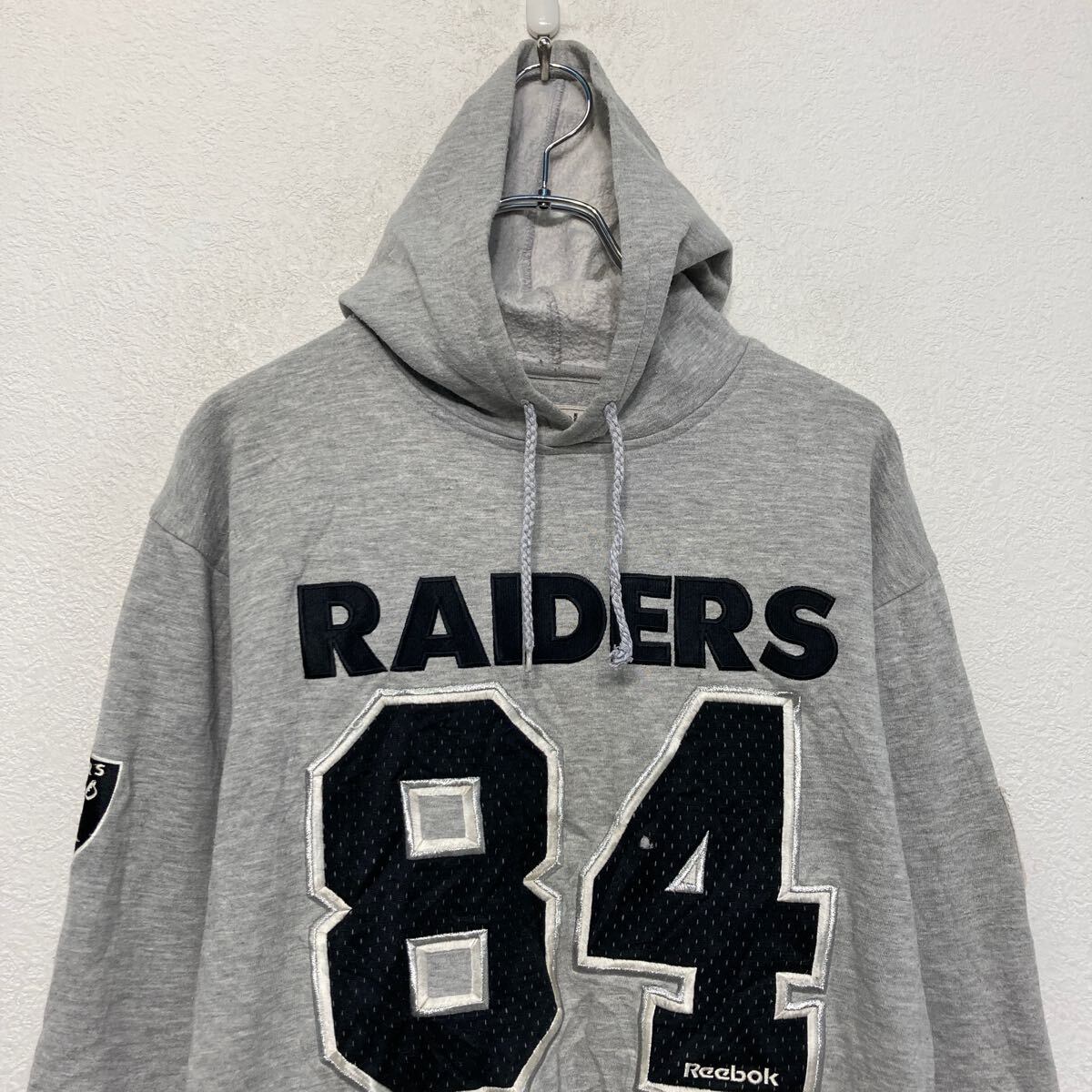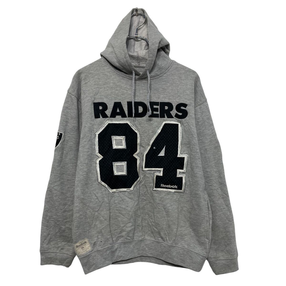 Reebok プリントスウェット パーカー リーボック キッズ XL グレー プルオーバー RAIDERS ワッペン 刺繍 古着卸 アメリカ仕入 a610-7691