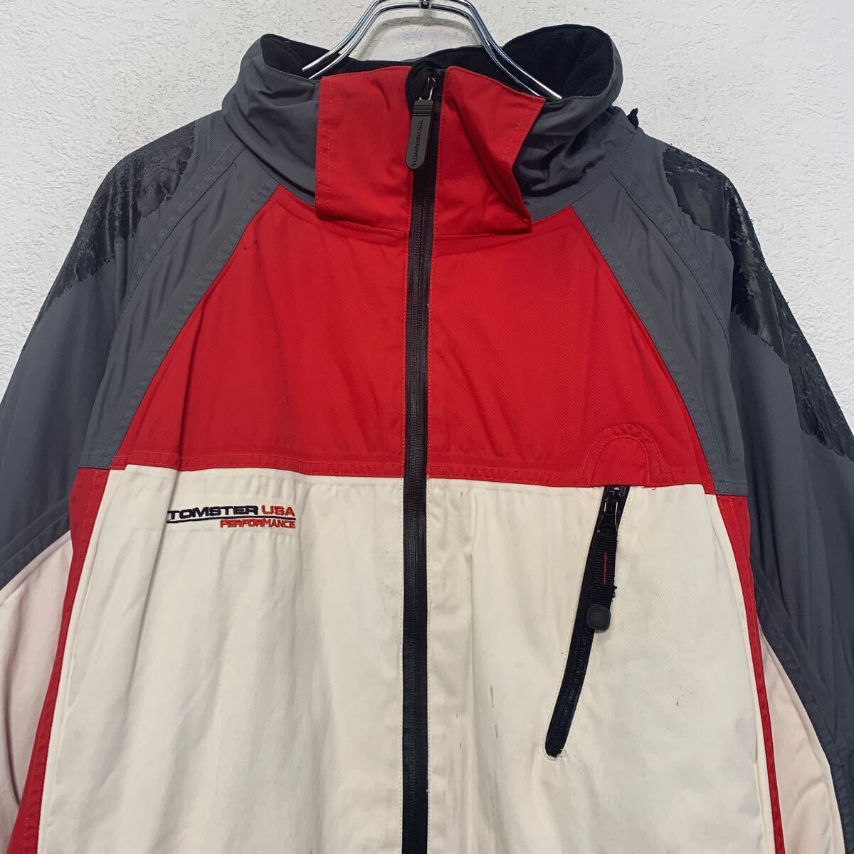 ナイロンジャケット L ホワイト レッド ダークグレー ジップアップ ラグラン 中綿 ワンポイント ロゴ 刺繍 古着卸 アメリカ仕入 a610-7892